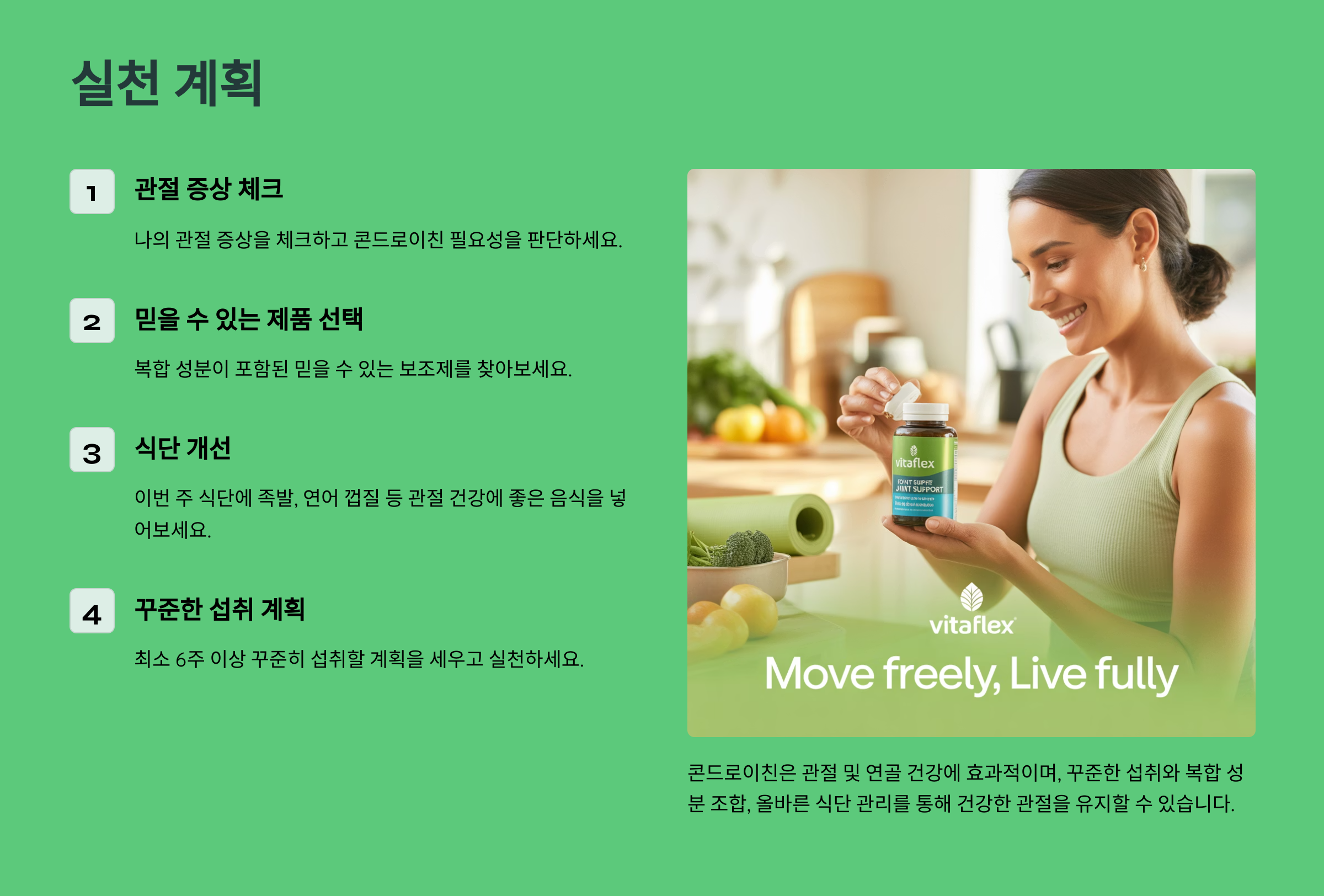 • 식단과 보조제를 함께 관리하면 더욱 건강한 관절을 유지할 수 있습니다.