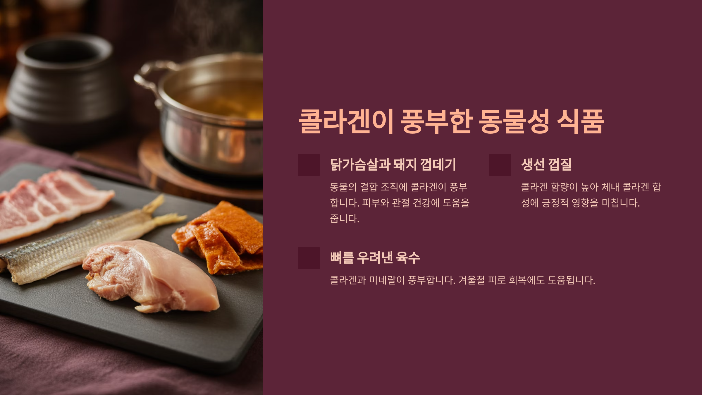 • “야근 때문에 식단 관리가 어려웠지만, 간단한 콜라겐 음식으로 도움을 받고 있어요.” – 50세 직장인 남성