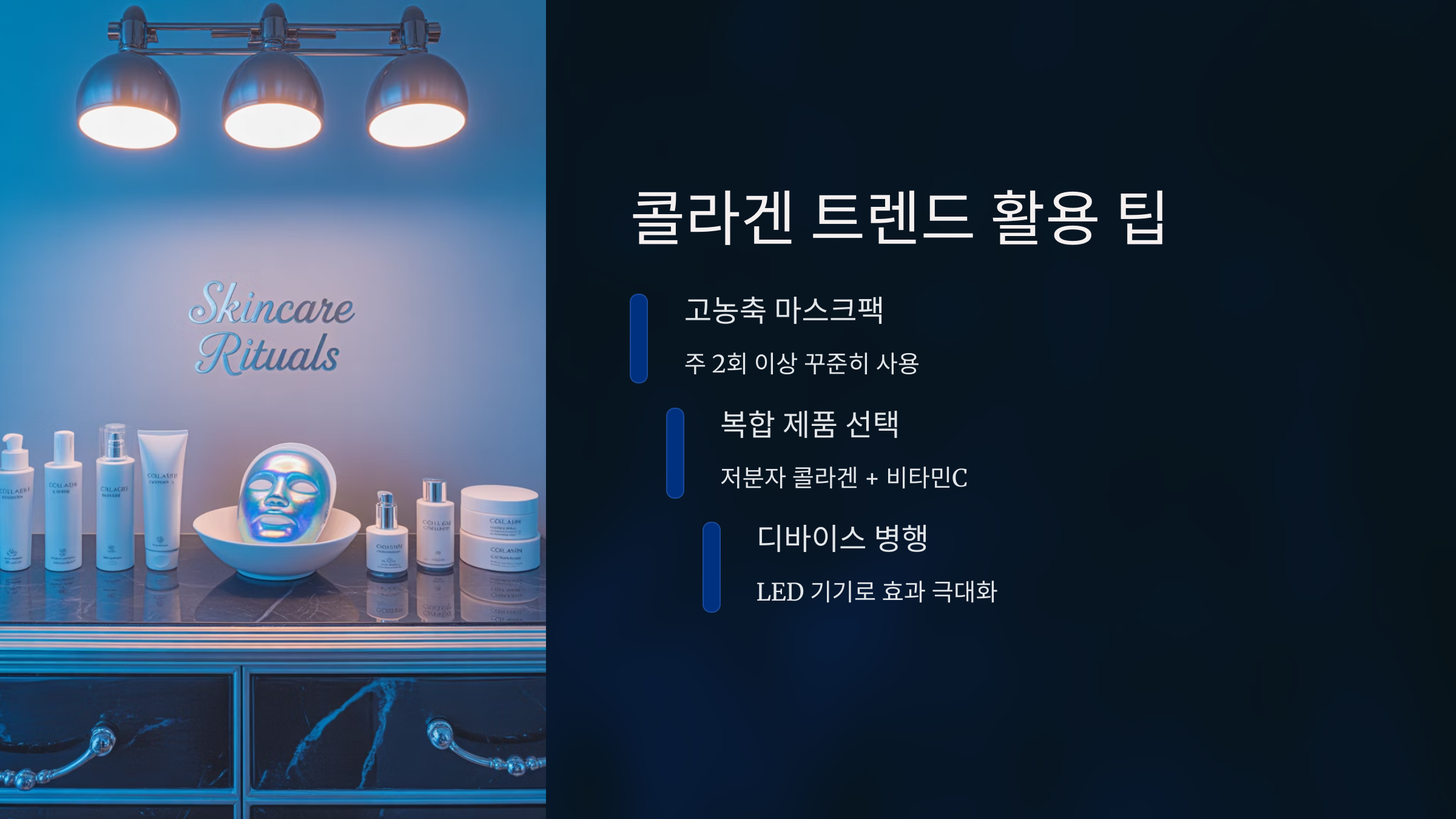 “최신 콜라겐 트렌드는 ‘효과와 편리성’을 동시에 잡는 방향으로 진화하고 있습니다. 40대 이상 분들은 본인 피부 상태와 라이프스타일에 맞는 제품과 기기를 선택하는 것이 중요합니다.” — 뷰티 연구소 이현정 박사