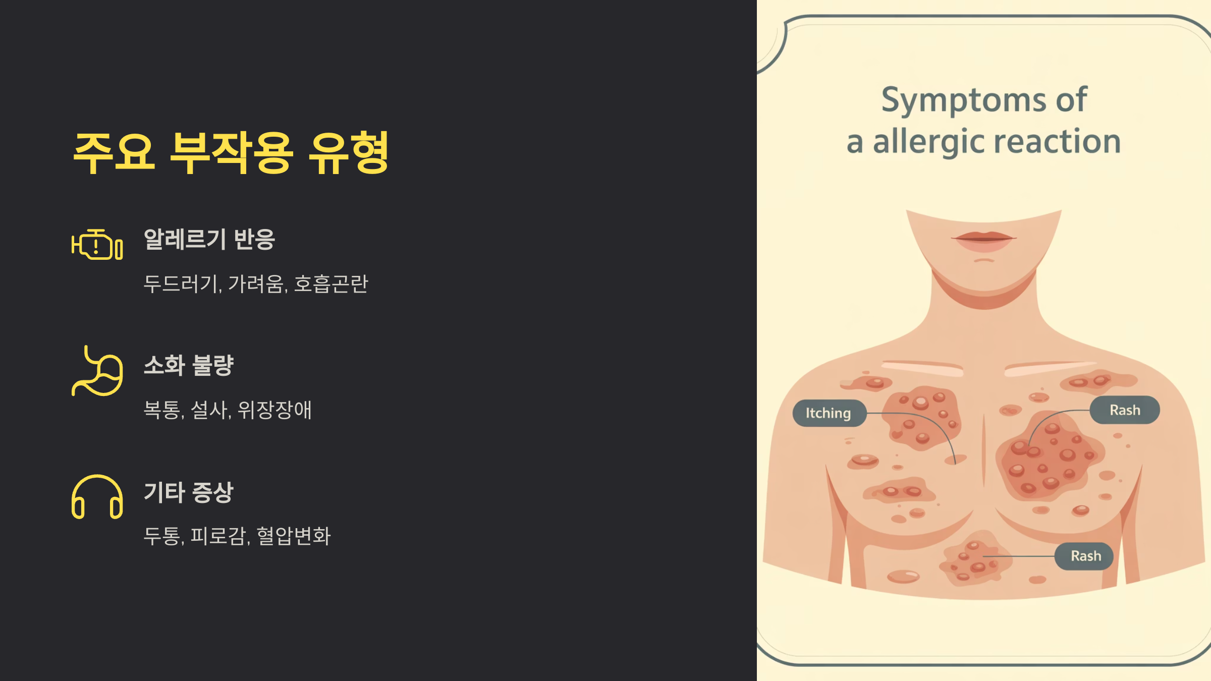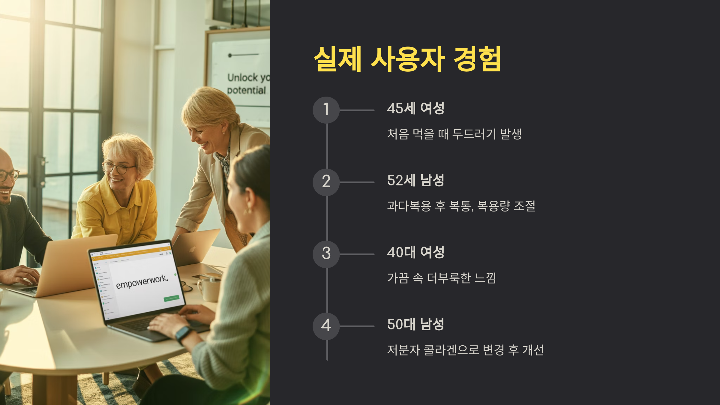 • “처음 먹을 때 두드러기가 생겨서 바로 중단했어요.” – 45세 여성