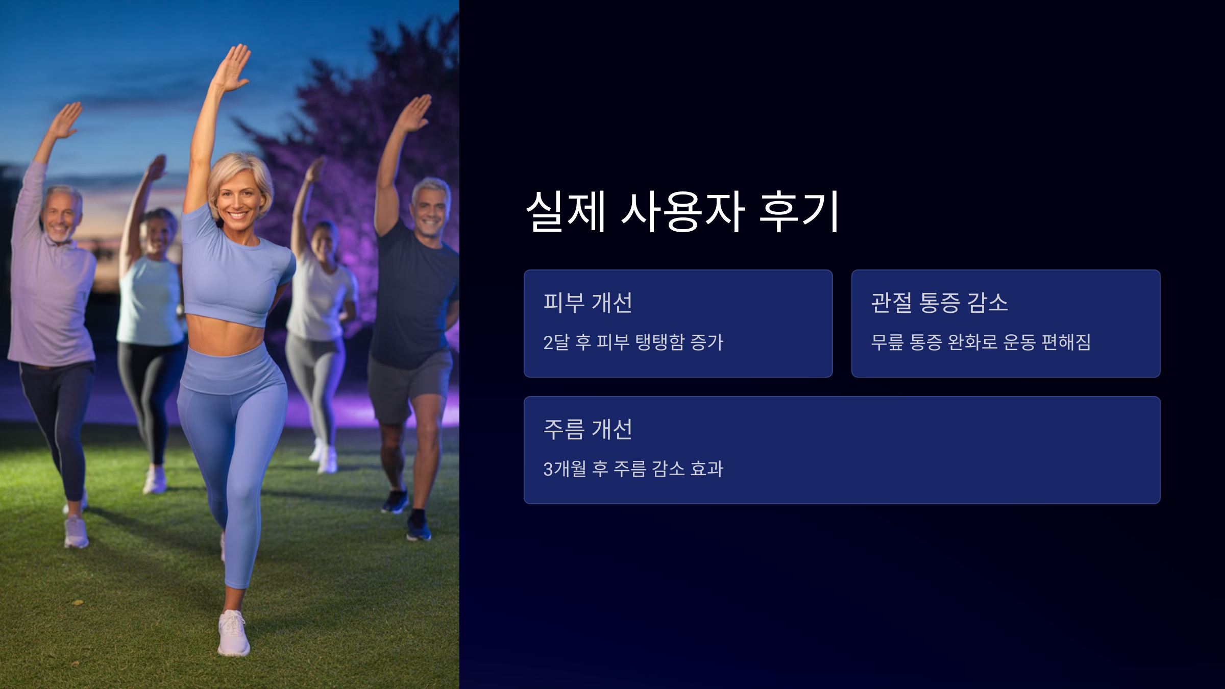 • “처음엔 효과 못 느꼈는데, 3개월 지나니 주름이 덜 보이네요.” - 42세 여성