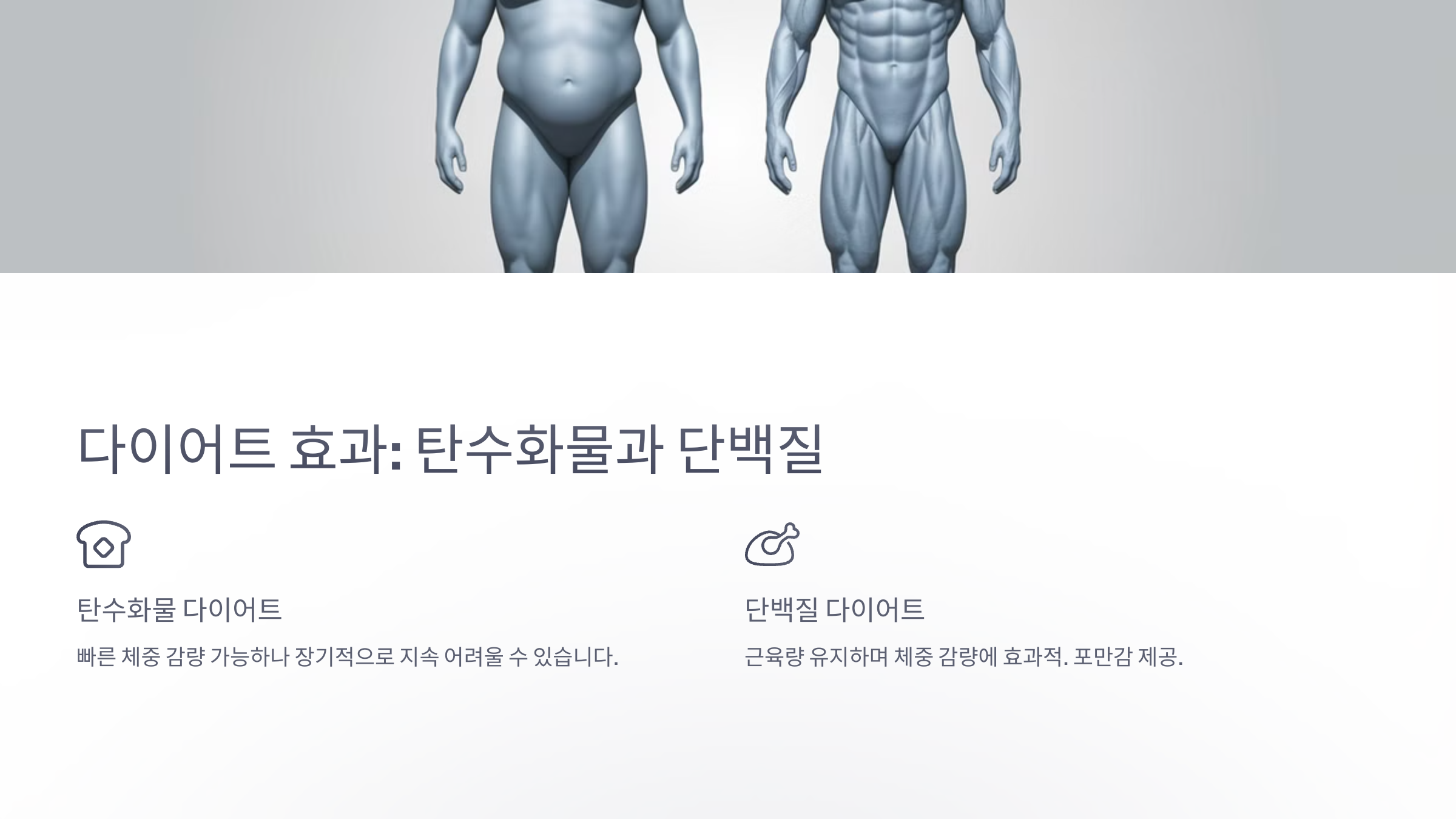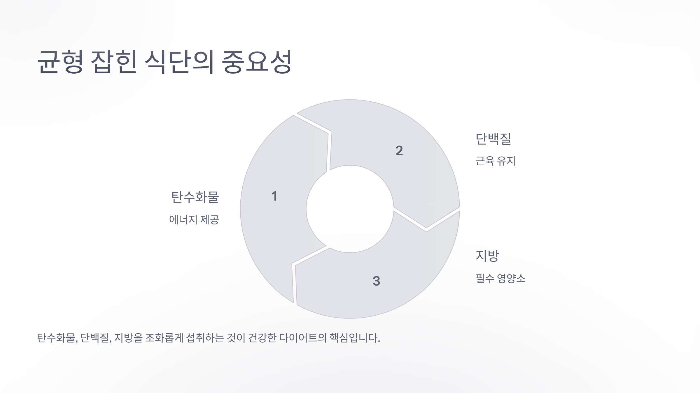 단백질 중심의 다이어트는 근육량을 유지하면서 체중을 줄이는 데 효과적입니다. 단백질은 포만감을 주기 때문에 과식을 방지하는 데 도움이 됩니다. 예를 들어, 아침에 단백질이 풍부한 식사를 하면 하루 종일 에너지를 유지할 수 있습니다.