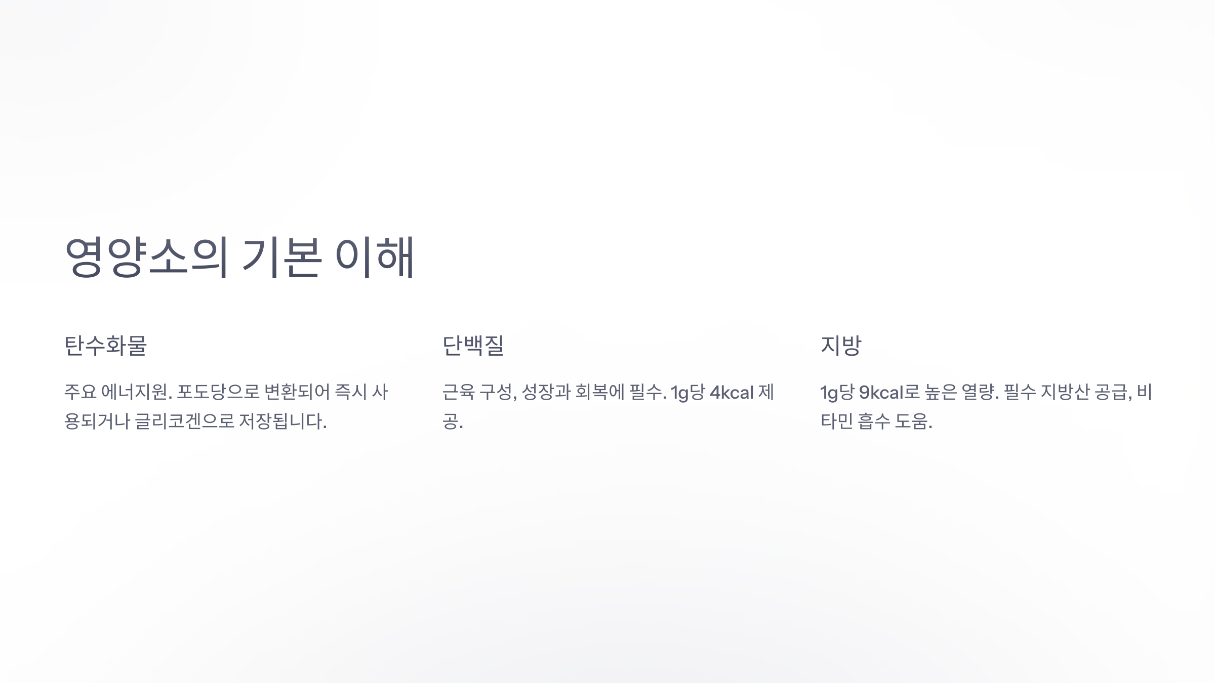 탄수화물, 단백질, 지방은 우리가 매일 섭취하는 주요 영양소입니다. 이 세 가지는 각각 다른 칼로리 값을 가지고 있으며, 우리 몸에서의 역할도 다릅니다. 다이어트를 할 때 이들 영양소의 차이를 이해하는 것은 매우 중요합니다. 이 글에서는 탄수화물, 단백질, 지방의 칼로리 차이점과 이들이 다이어트에 미치는 영향을 자세히 살펴보겠습니다.