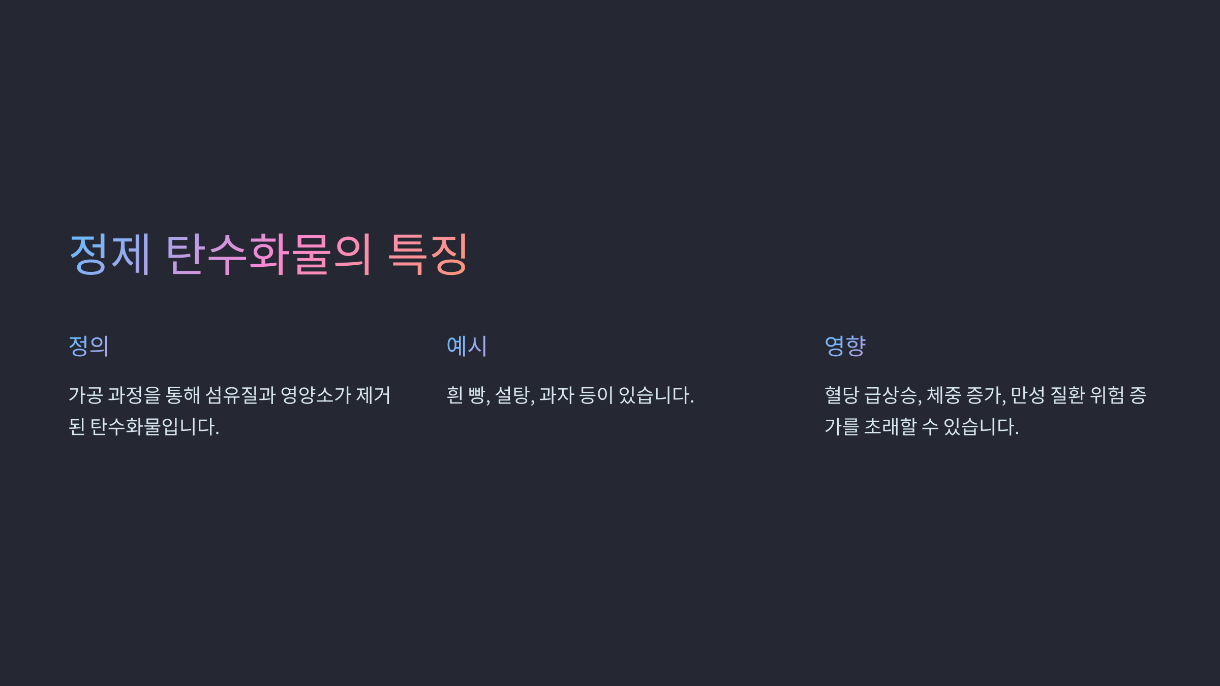 [정제 탄수화물의 특징]