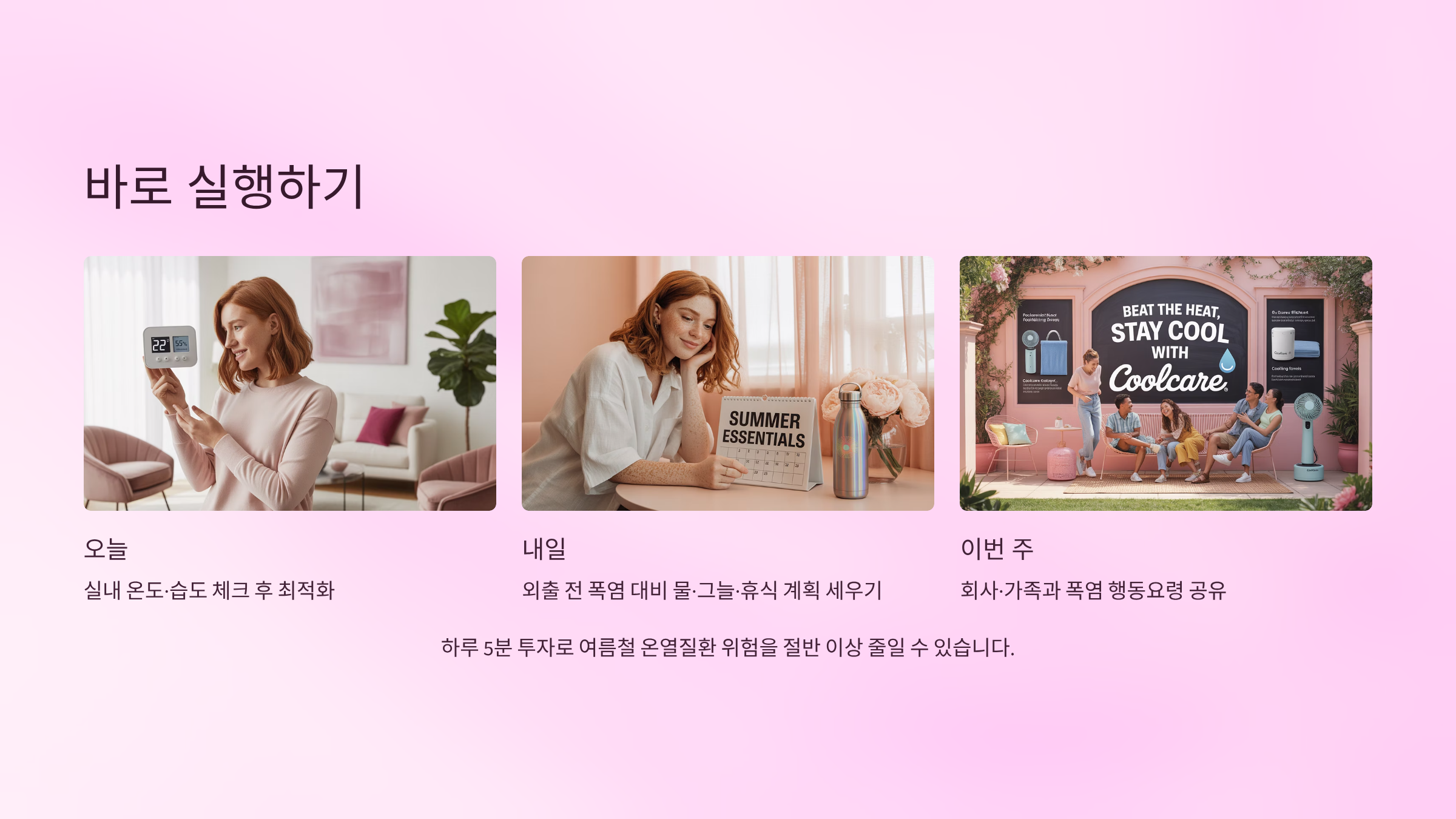하루 5분 투자로 여름철 온열질환 위험을 절반 이상 줄일 수 있습니다.