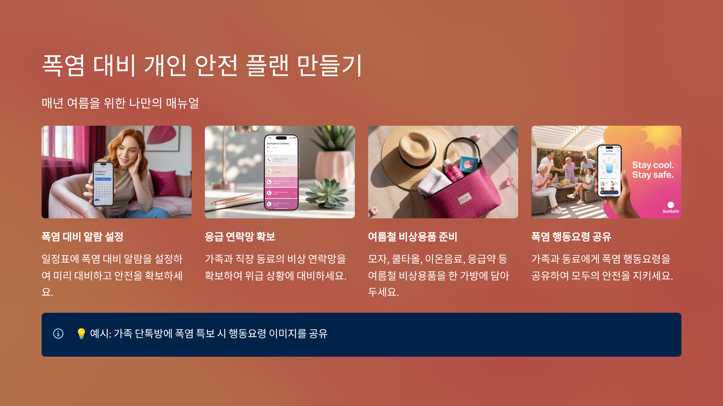 💡 예시: 가족 단톡방에 폭염 특보 시 행동요령 이미지를 공유