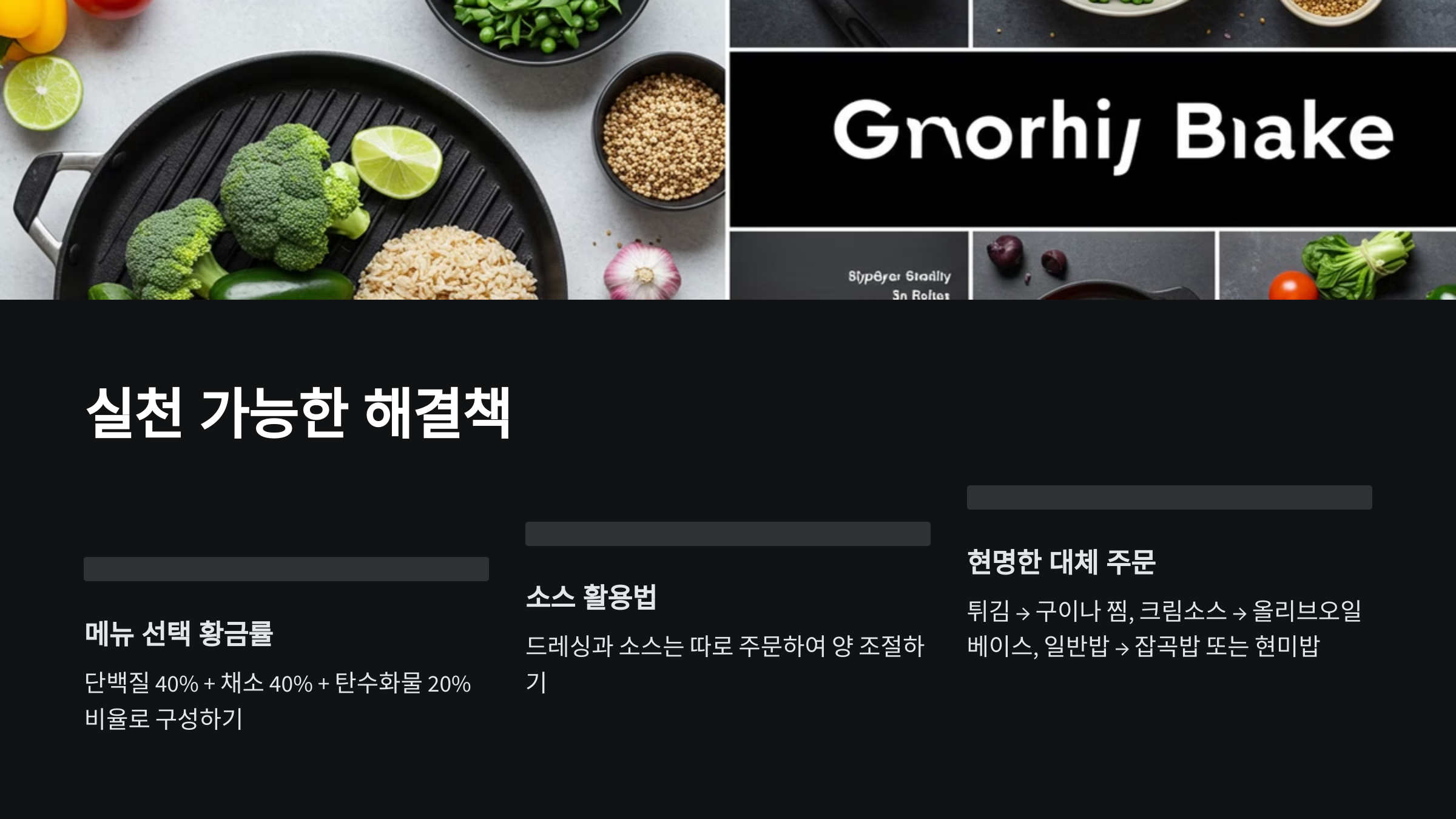 1. 메뉴 선택 황금률: 단백질 40% + 채소 40% + 탄수화물 20% 비율로 구성하기