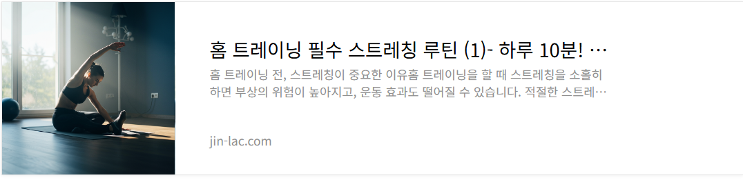 | 홈 트레이닝 필수 스트레칭 루틴 (1)- 하루 10분! 효과적인 스트레칭 루틴 (0) | 2025.03.29 |