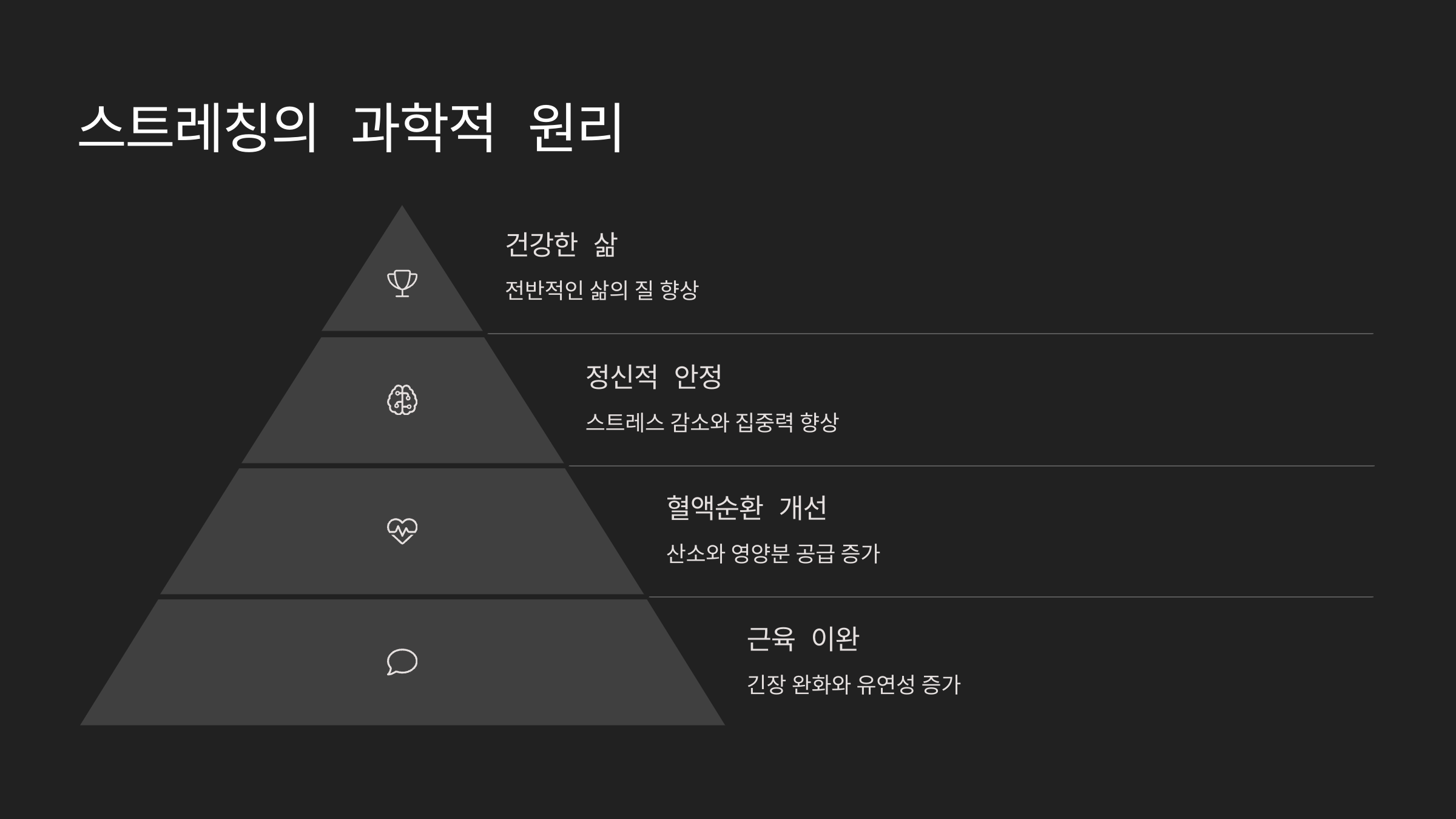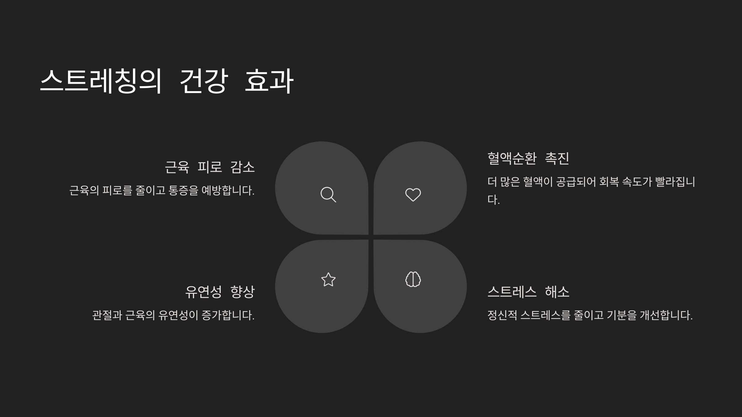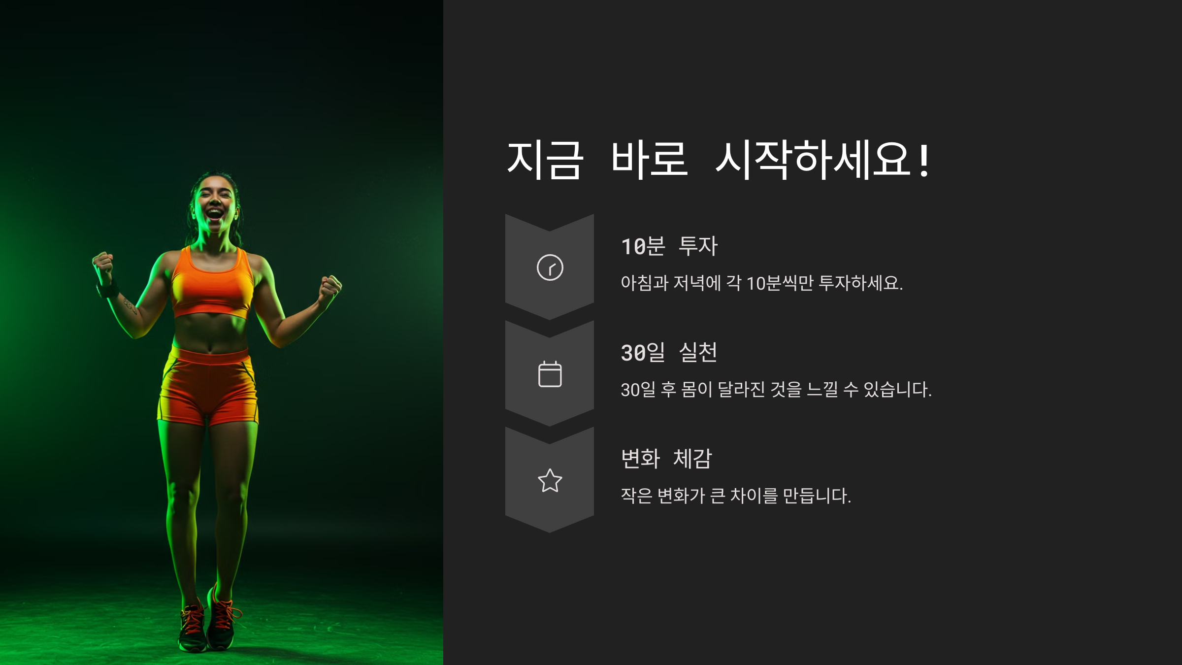 매일 10분의 스트레칭이 가져오는 변화는 놀라울 정도입니다. 꾸준히 실천하면, 유연성 향상, 스트레스 해소, 기분 개선 등 다양한 효과를 경험할 수 있습니다. 스트레칭으로 하루를 더욱 건강하게 시작하고, 마무리하세요. 그 변화는 생각보다 빠르게 찾아옵니다.