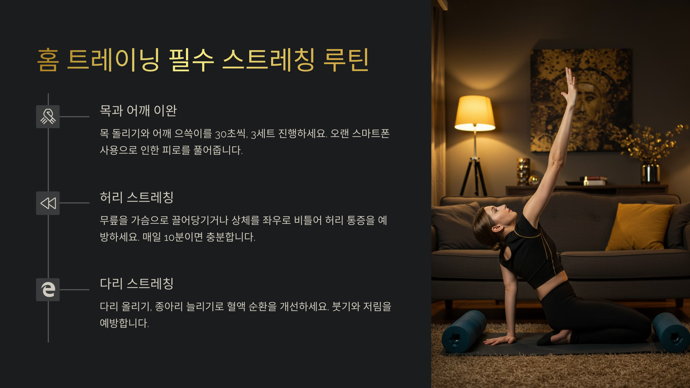 홈 트레이닝 필수 스트레칭 루틴(6) - 근육 이완과 피로 회복을 위한 홈트 스트레칭