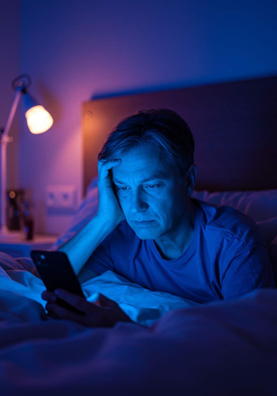 40대 직장인의 대표적인 수면 방해 요인은 ‘의식하지 못한 스크린 타임’입니다. 퇴근 후 누워서 스마트폰을 보다가 새벽 1시를 넘기는 일이 다반사입니다. 뇌는 블루라이트를 낮으로 인식하고 멜라토닌 분비가 억제되어 수면 유도에 실패하게 되죠. 대한수면학회 보고서에 따르면, 자기 전 1시간 스마트폰 사용 시 평균 수면 시간이 52분 줄어드는 것으로 나타났습니다.