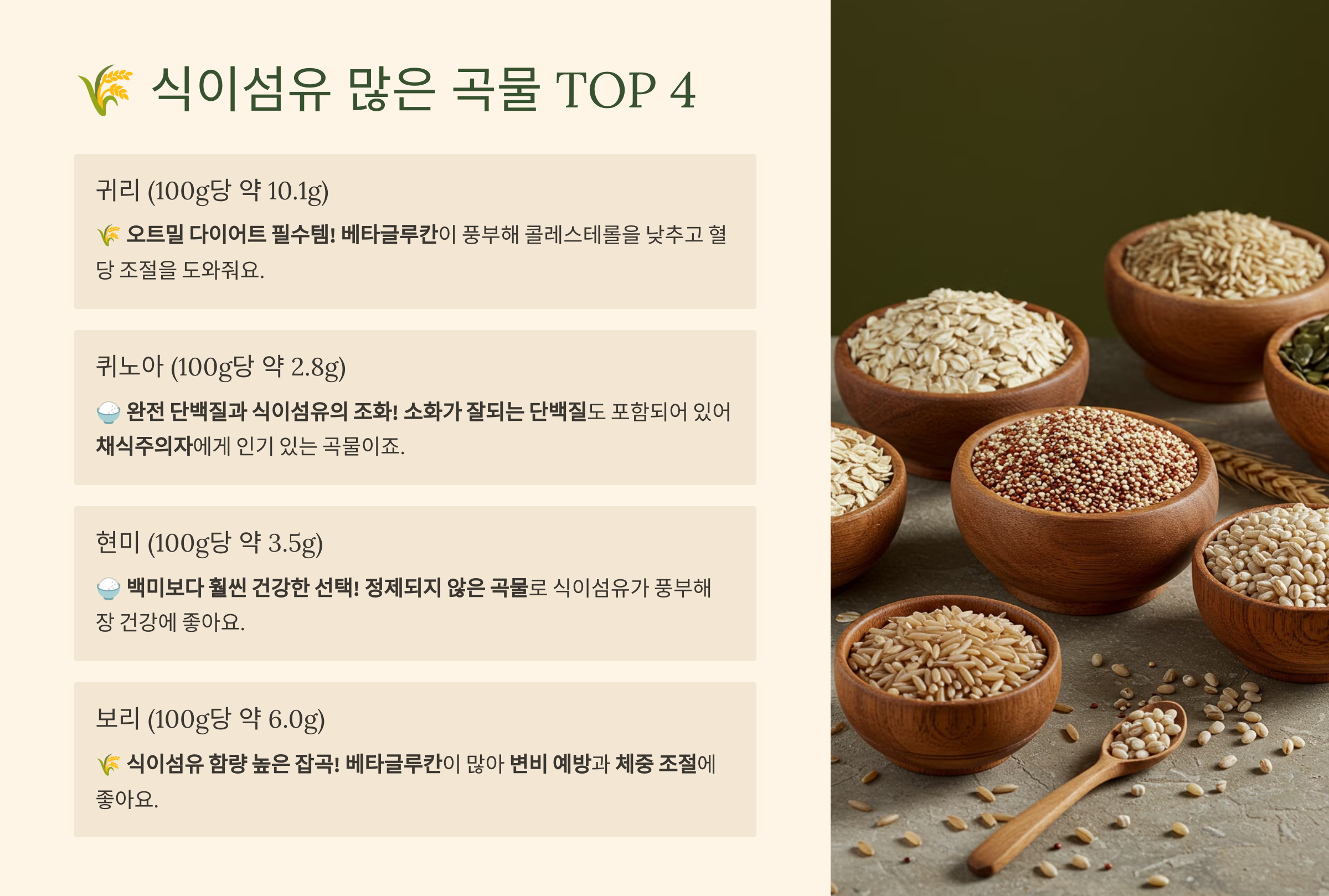 🌾 식이섬유 많은 곡물 TOP 4