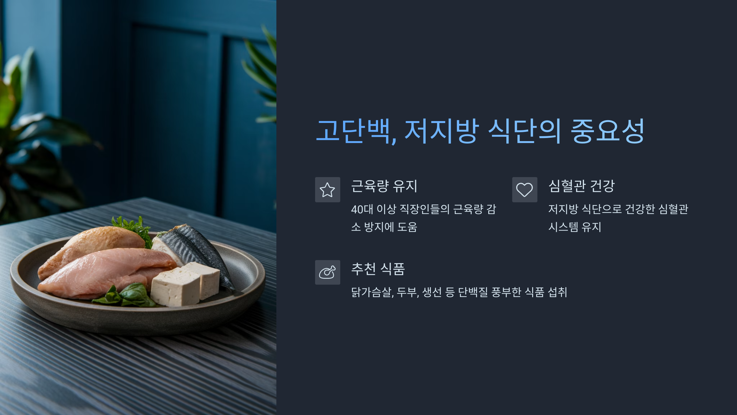 (1) 고단백, 저지방 식단의 중요성