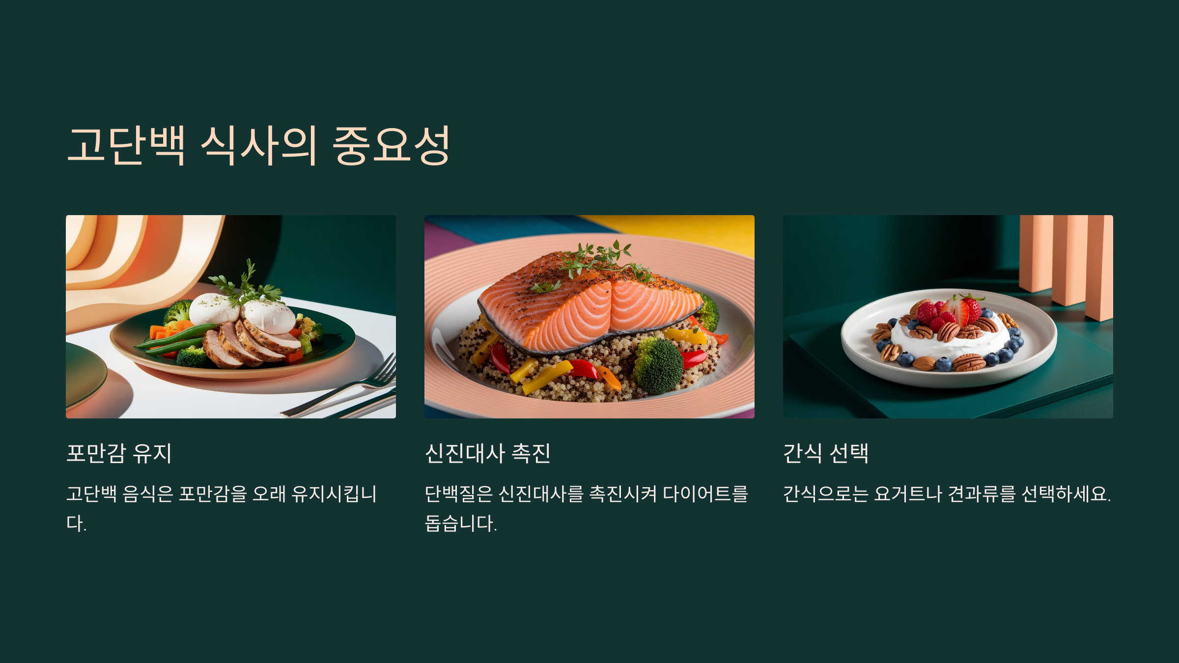 고단백 음식은 포만감을 오래 유지시켜 탄수화물에 대한 욕구를 감소시킵니다. 고단백 식사는 체중 감소에도 효과적이며, 신진대사를 촉진시켜 다이어트를 돕습니다.