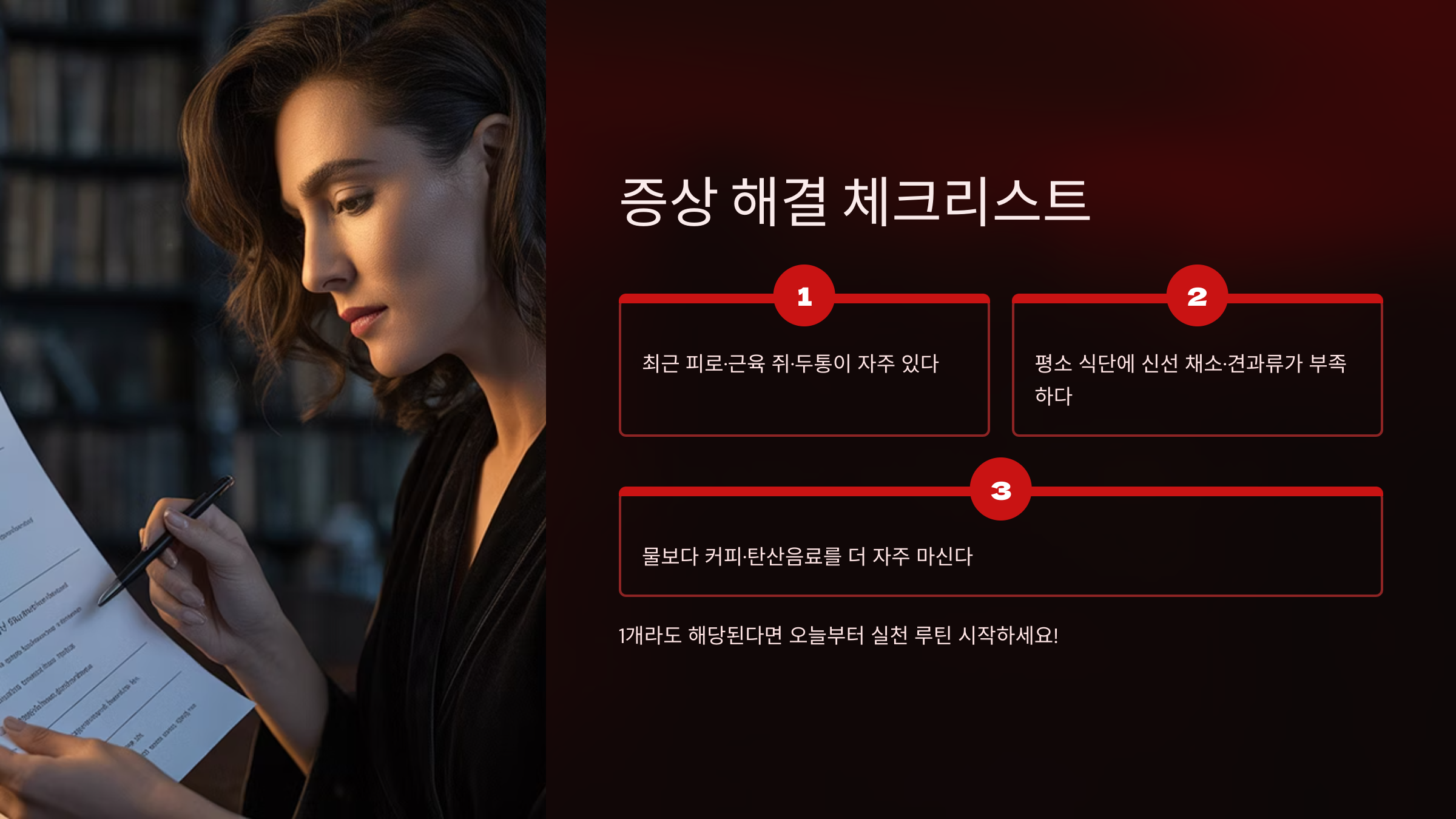 • [ ] 최근 피로·근육 쥐·두통이 자주 있다