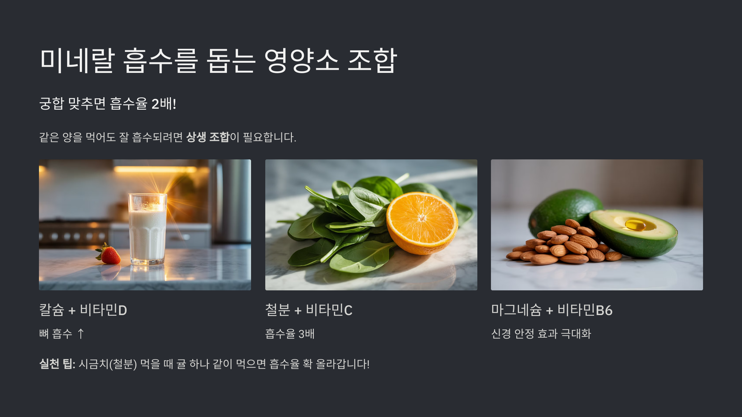 ☀️ 2. 미네랄 흡수를 돕는 영양소 조합