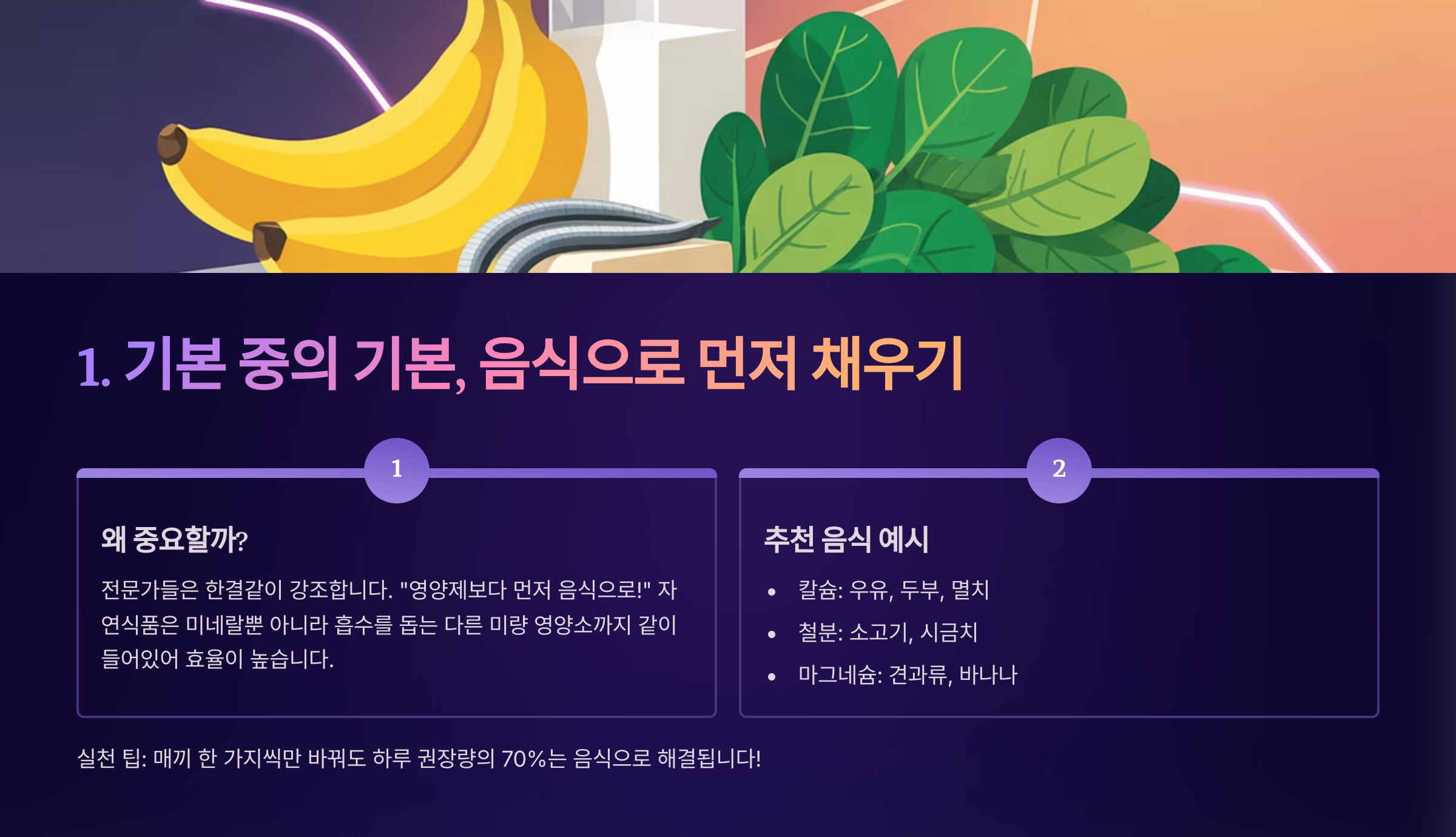 “먹기만 하면 끝? 아닙니다!” 이 글 하나면 전문가들이 권하는 실속 있는 미네랄 섭취법 TOP 5를 오늘부터 바로 실천할 수 있습니다.