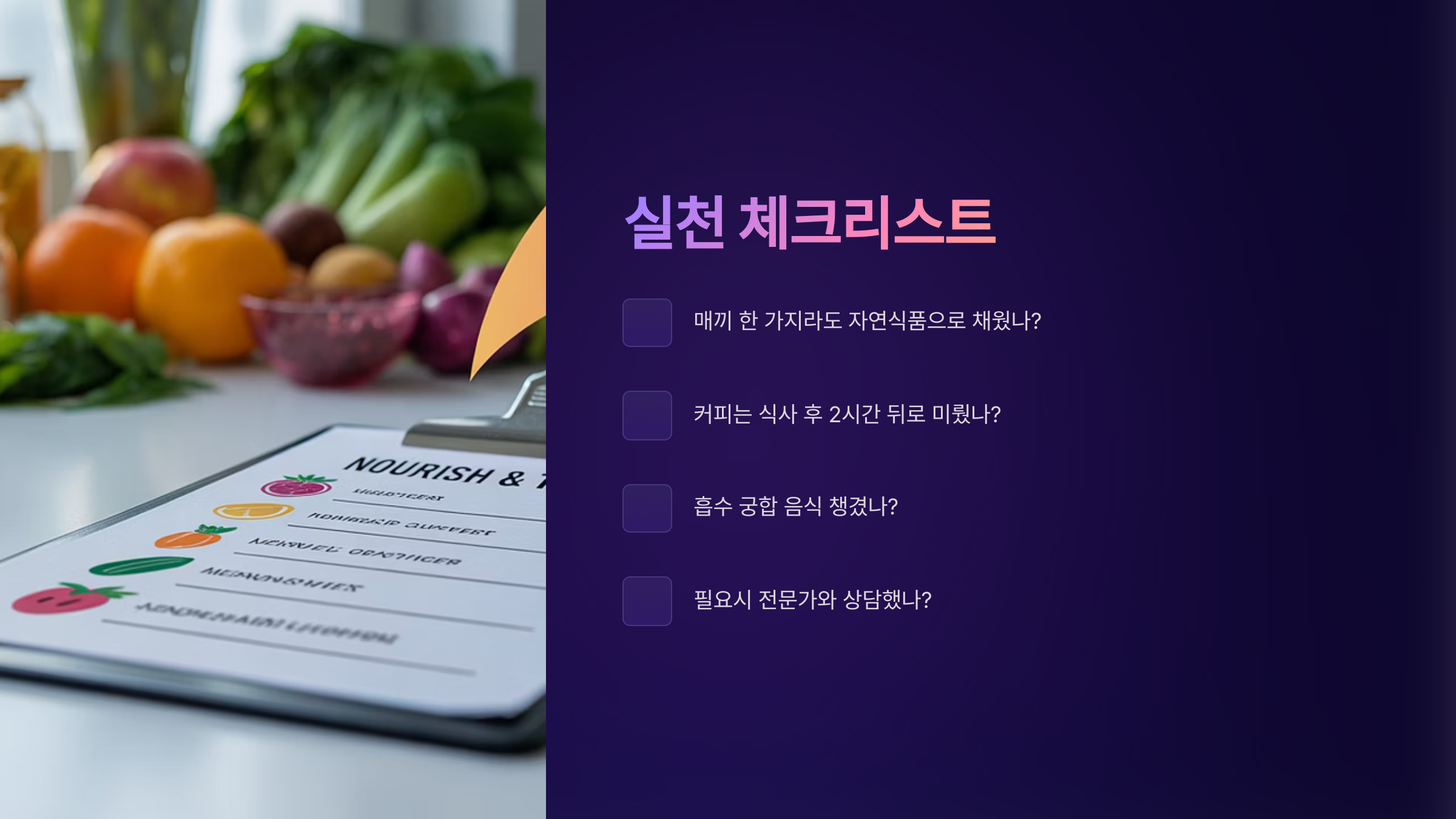 전문가들은 한결같이 강조합니다. “영양제보다 먼저 음식으로!”