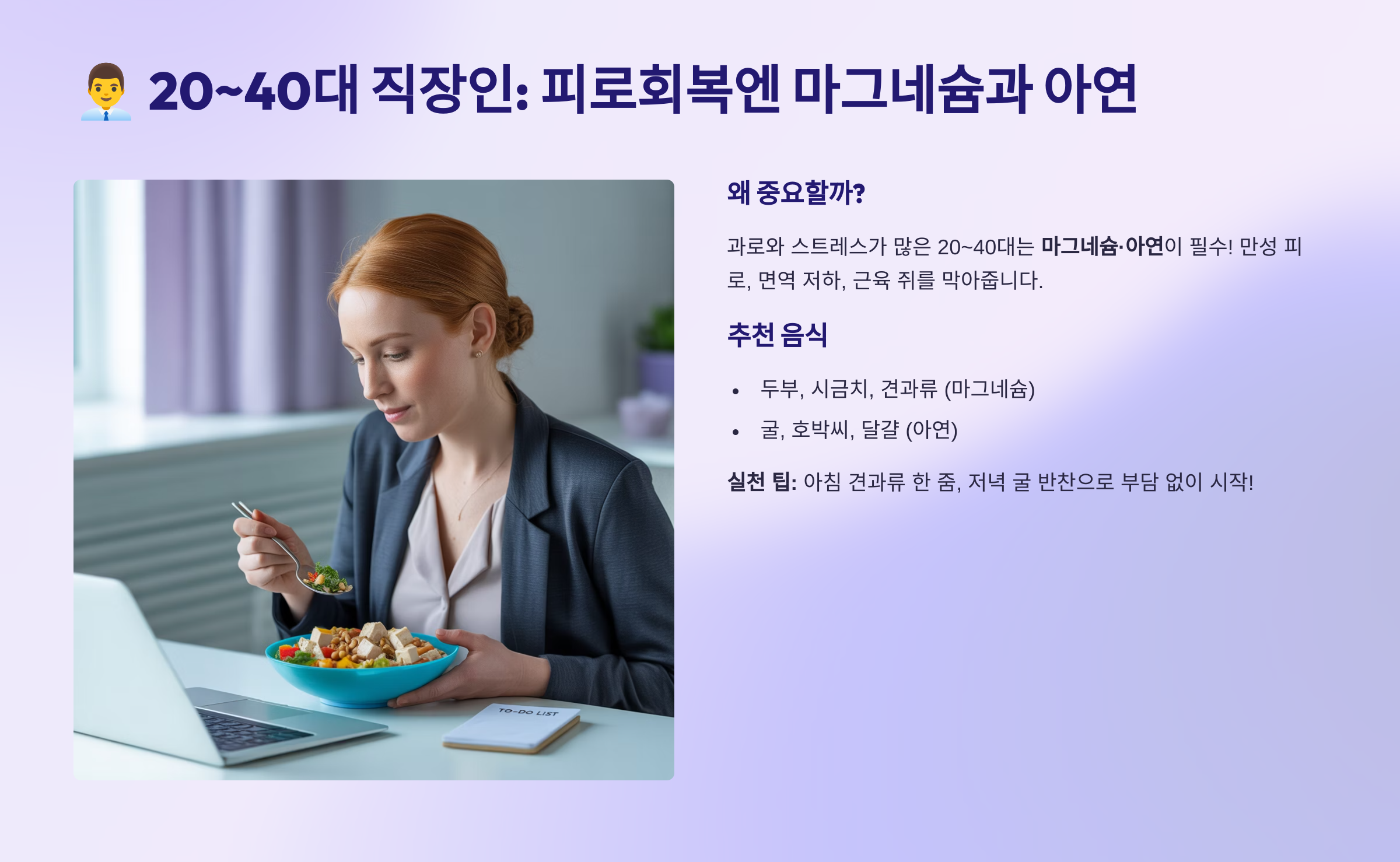 👨💼 3. 20~40대 직장인: 피로해소엔 마그네슘과 아연