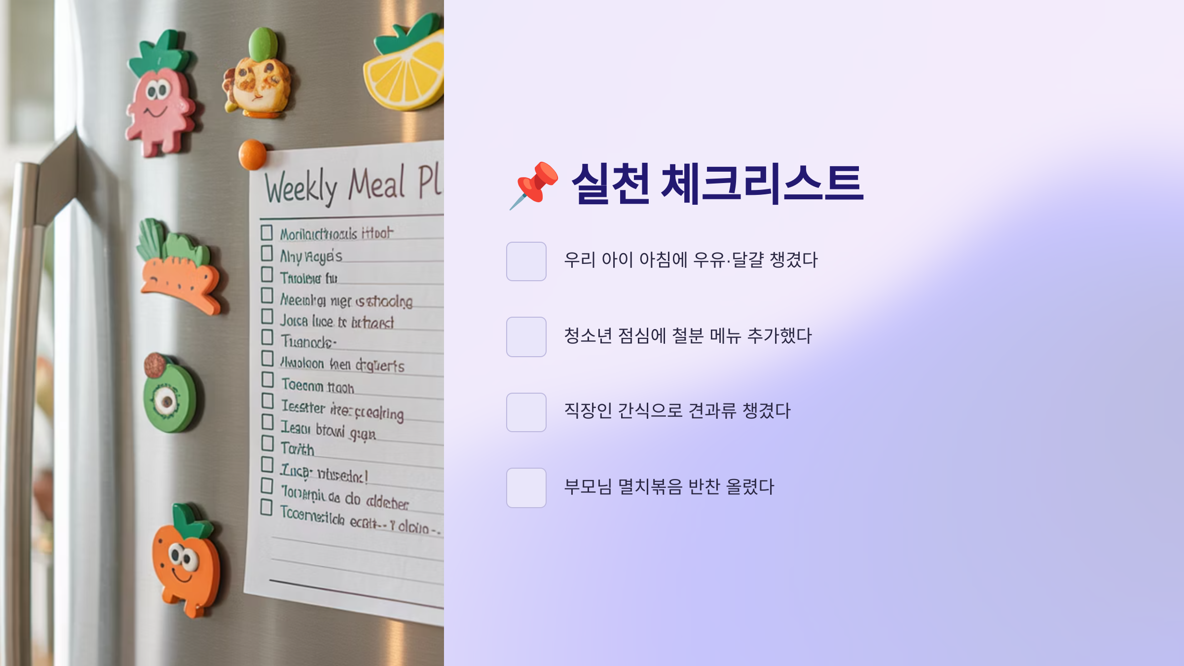 - [ ] 우리 아이 아침에 우유·달걀 챙겼다