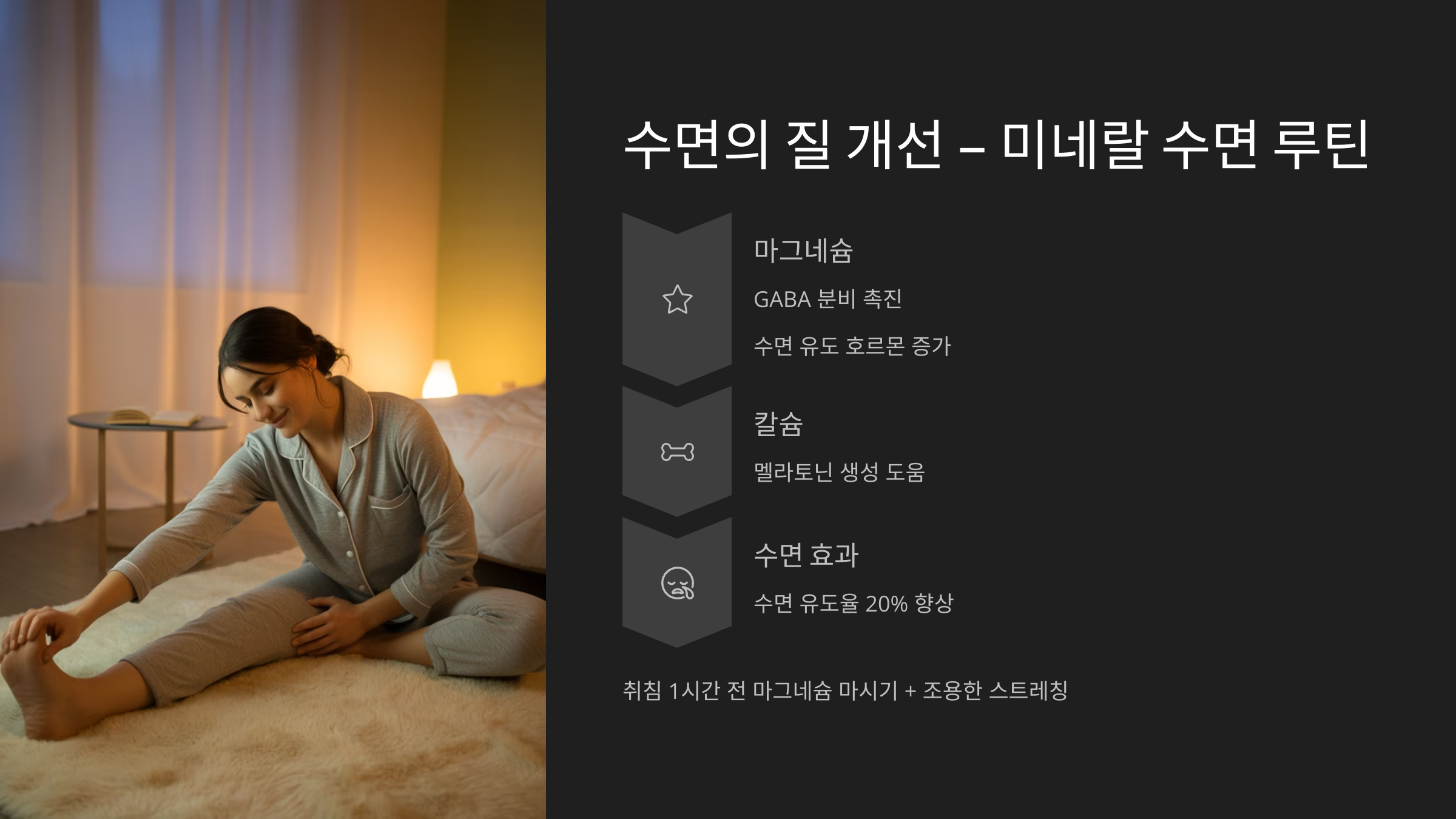 🛌 5. 수면의 질 개선 – 미네랄 수면 루틴