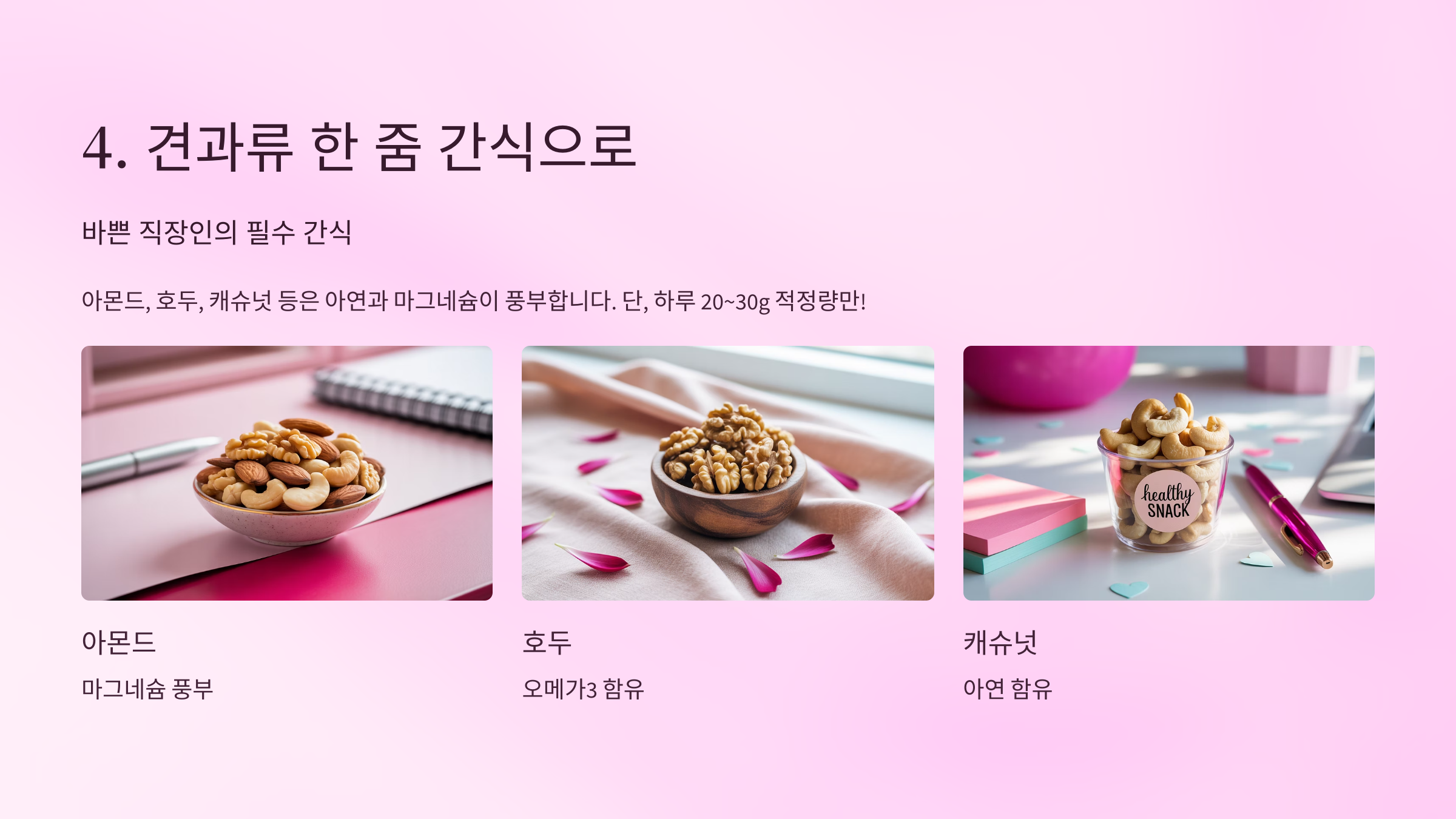 ✅ 4. 견과류 한 줌 간식으로