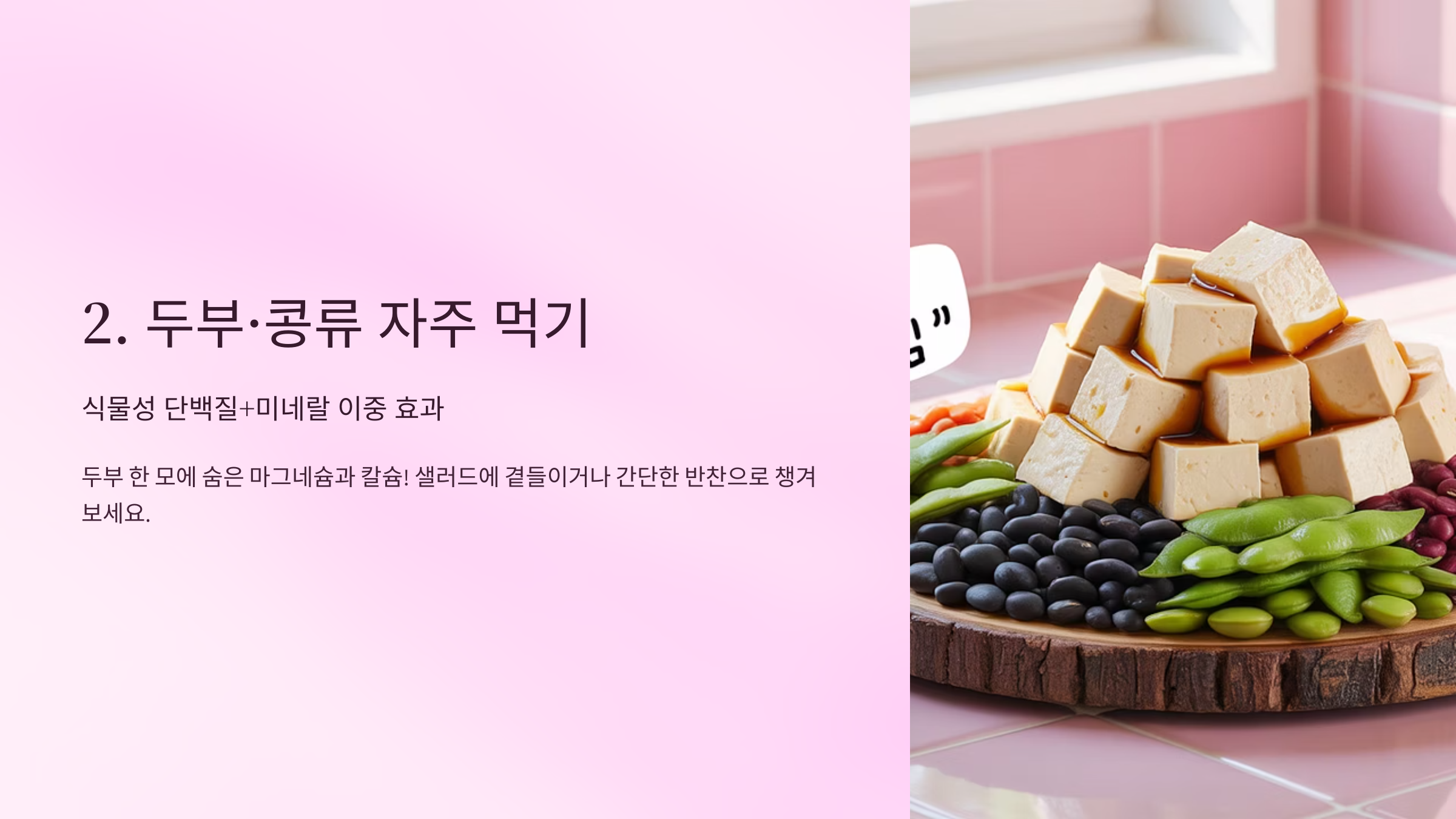 ✅ 2. 두부·콩류 자주 먹기