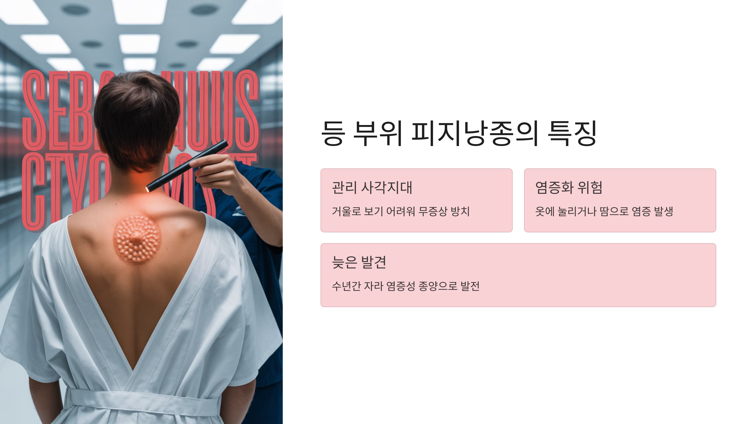 (2) 등 부위 피지낭종: 무증상 방치 → 염증화 위험