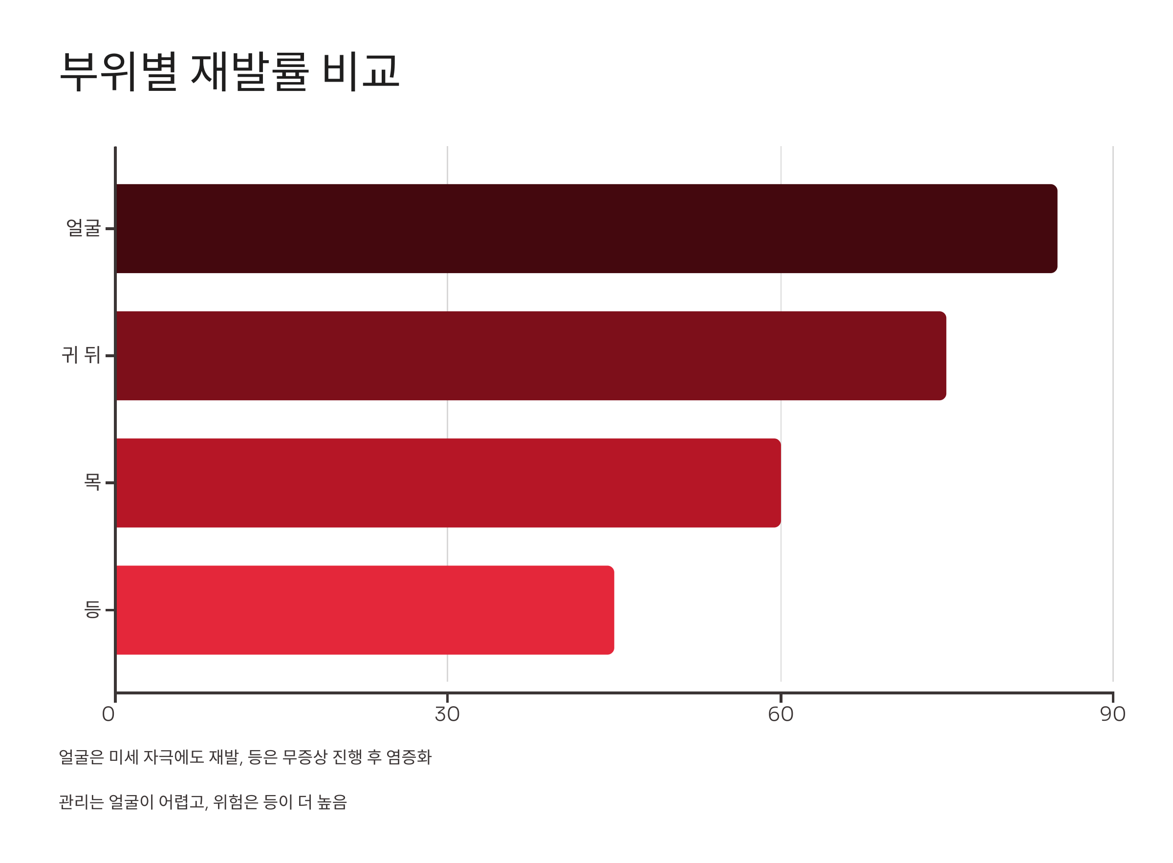 (3) 재발률 측면 비교: 얼굴 > 등