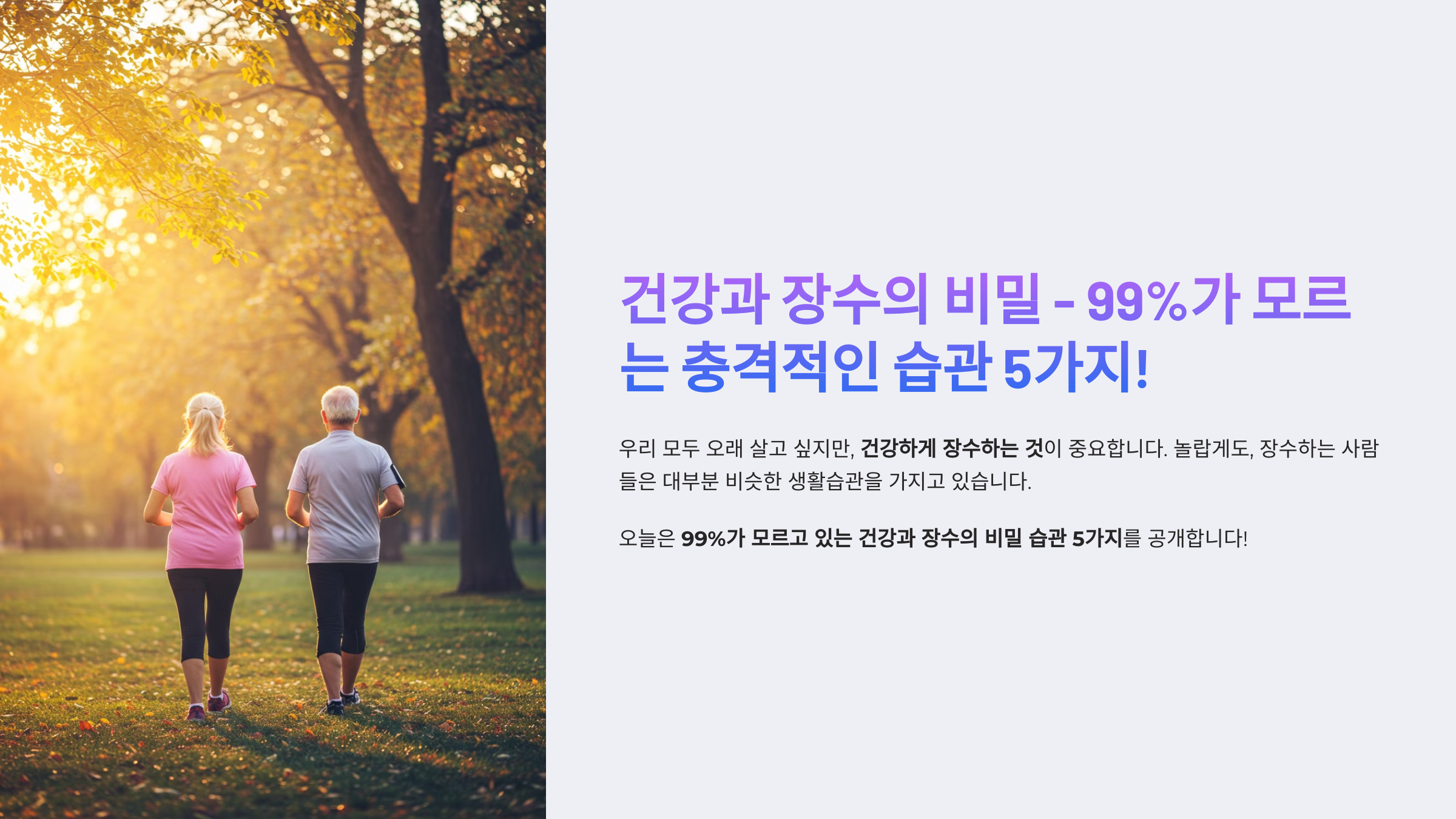 오늘은 99%가 모르고 있는 건강과 장수의 비밀 습관 5가지를 공개합니다!