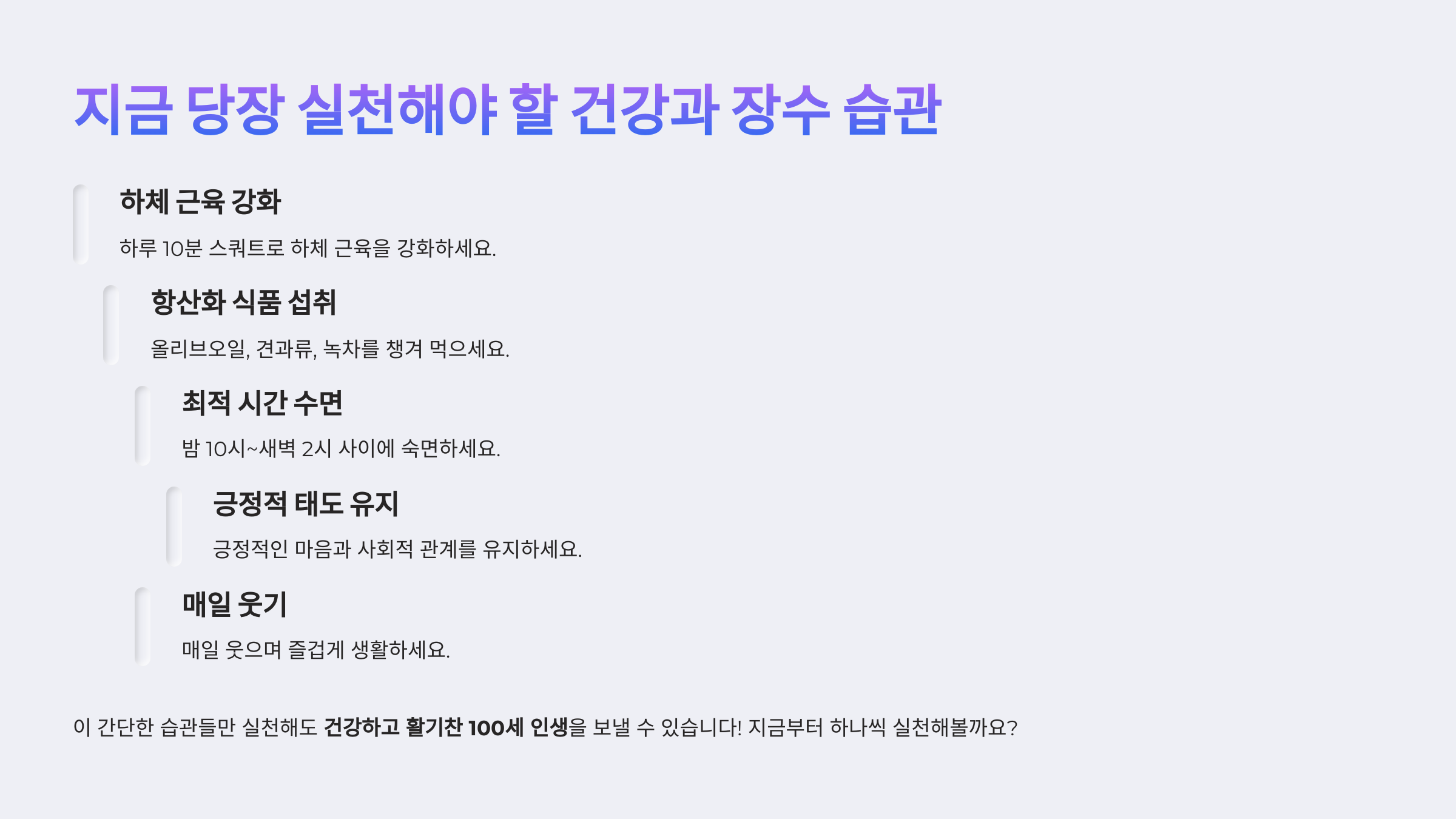 🎯 결론: 지금 당장 실천해야 할 건강과 장수 습관