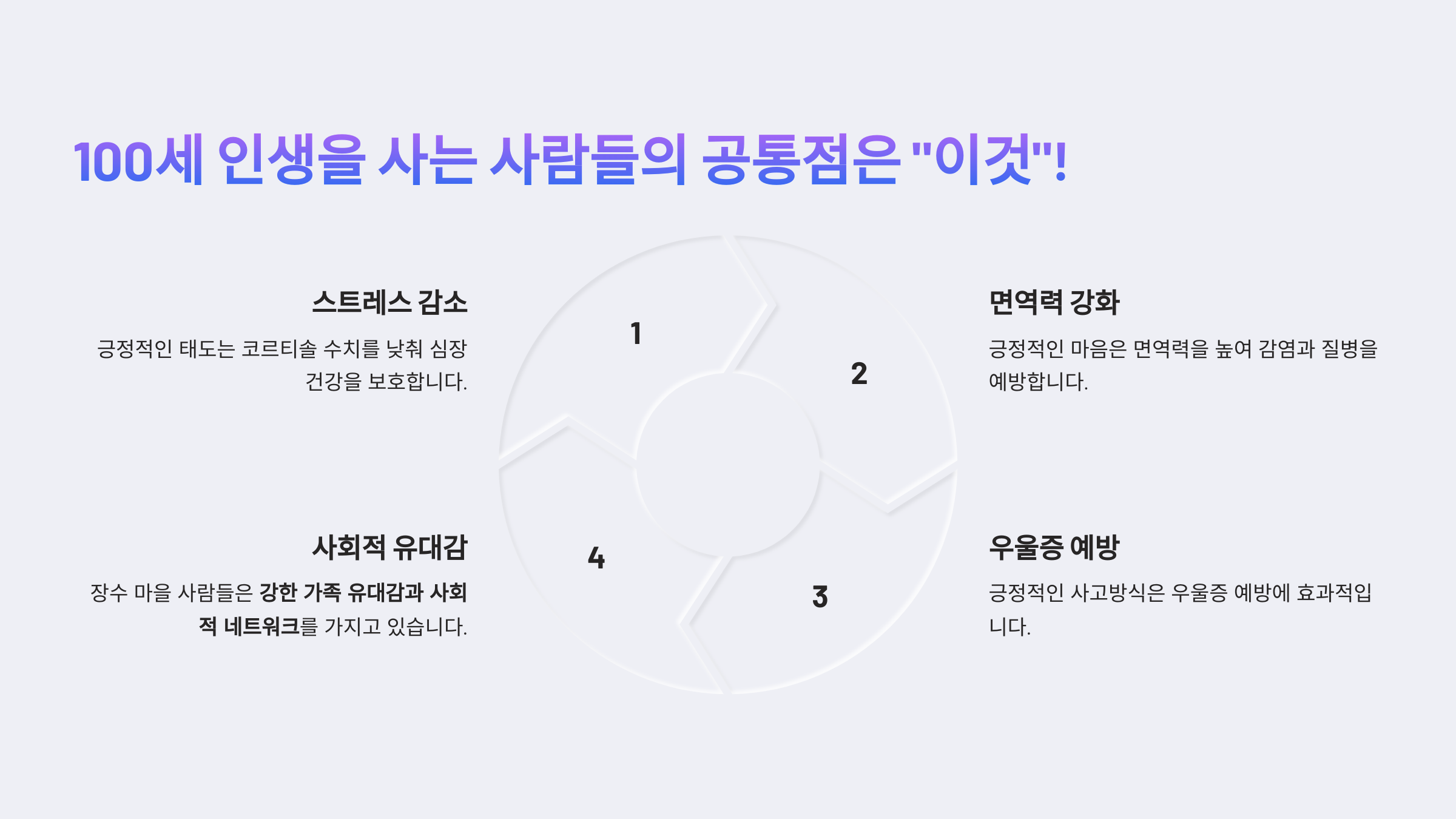 🚀 4. 100세 인생을 사는 사람들의 공통점은 "이것"!