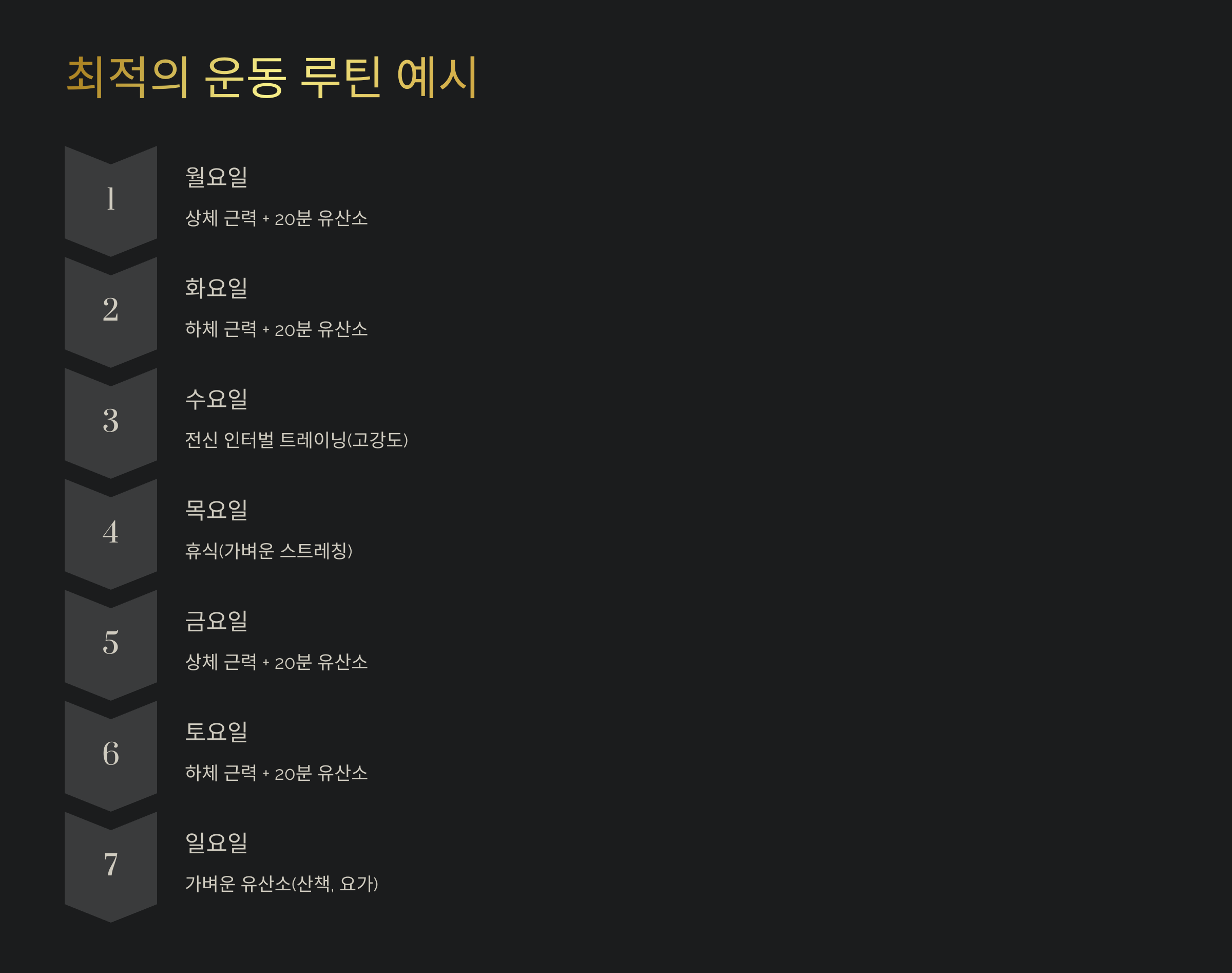 ✅ 운동 루틴을 4~6주마다 변경 → 같은 운동만 하면 몸이 적응해서 칼로리 소모가 줄어들어요!