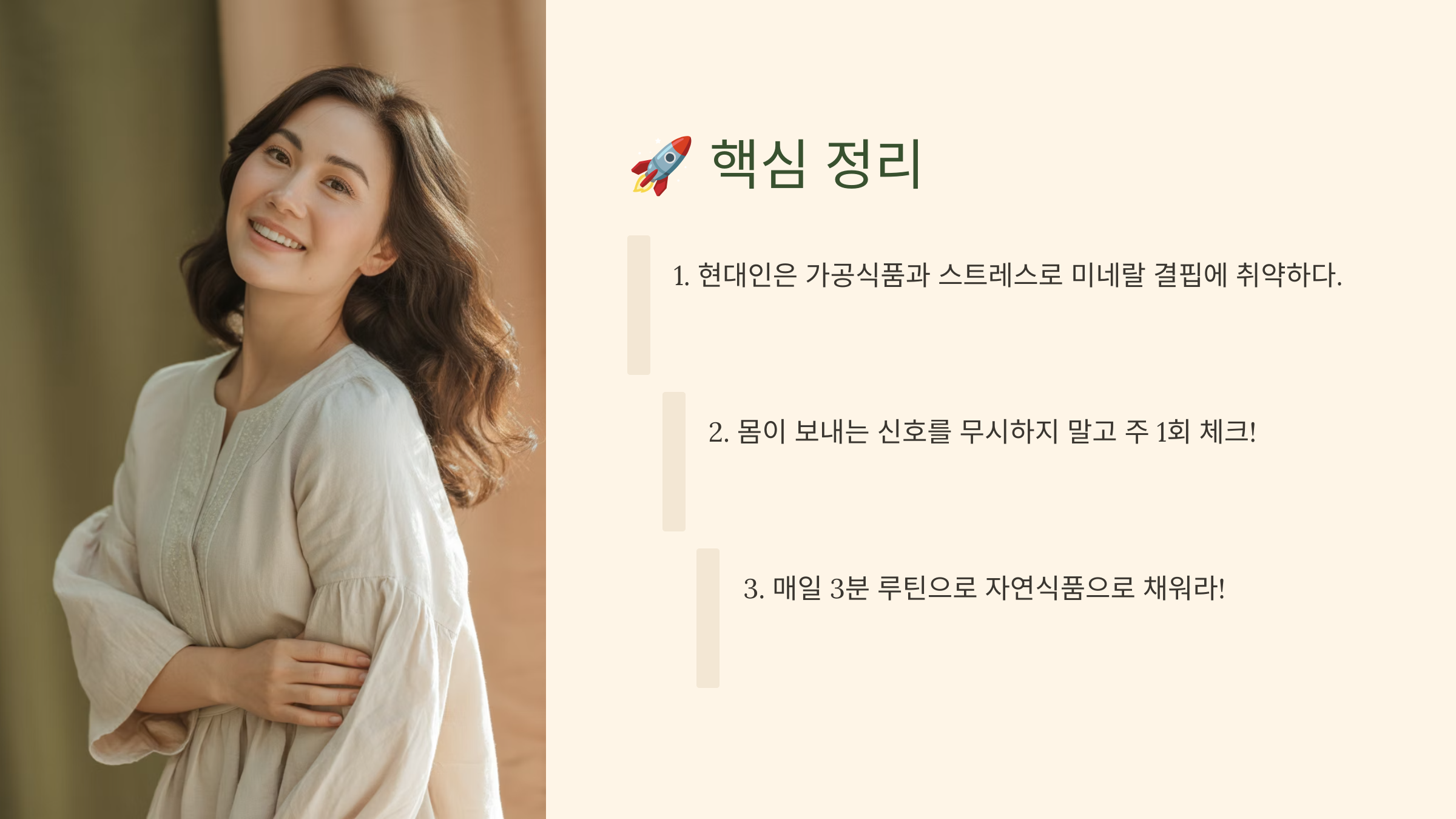 - 매일 3분 루틴으로 자연식품으로 채워라!