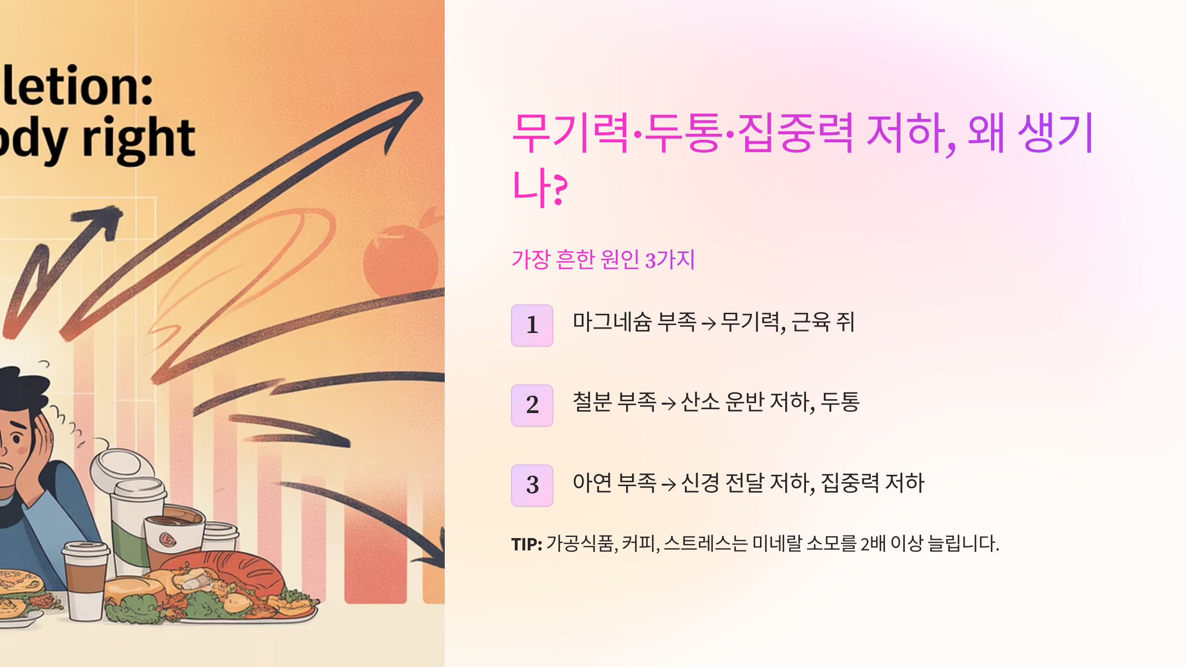 🚨 무기력·두통·집중력 저하, 미네랄 부족의 경고