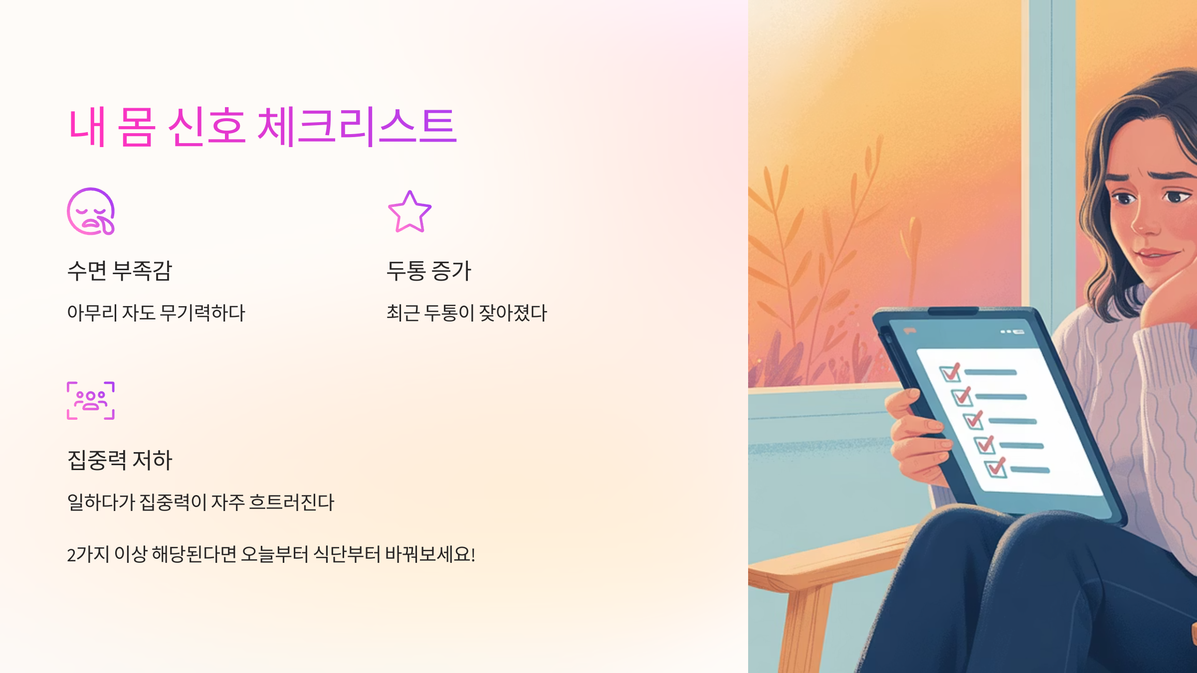 2가지 이상 해당된다면 오늘부터 식단부터 바꿔보세요!