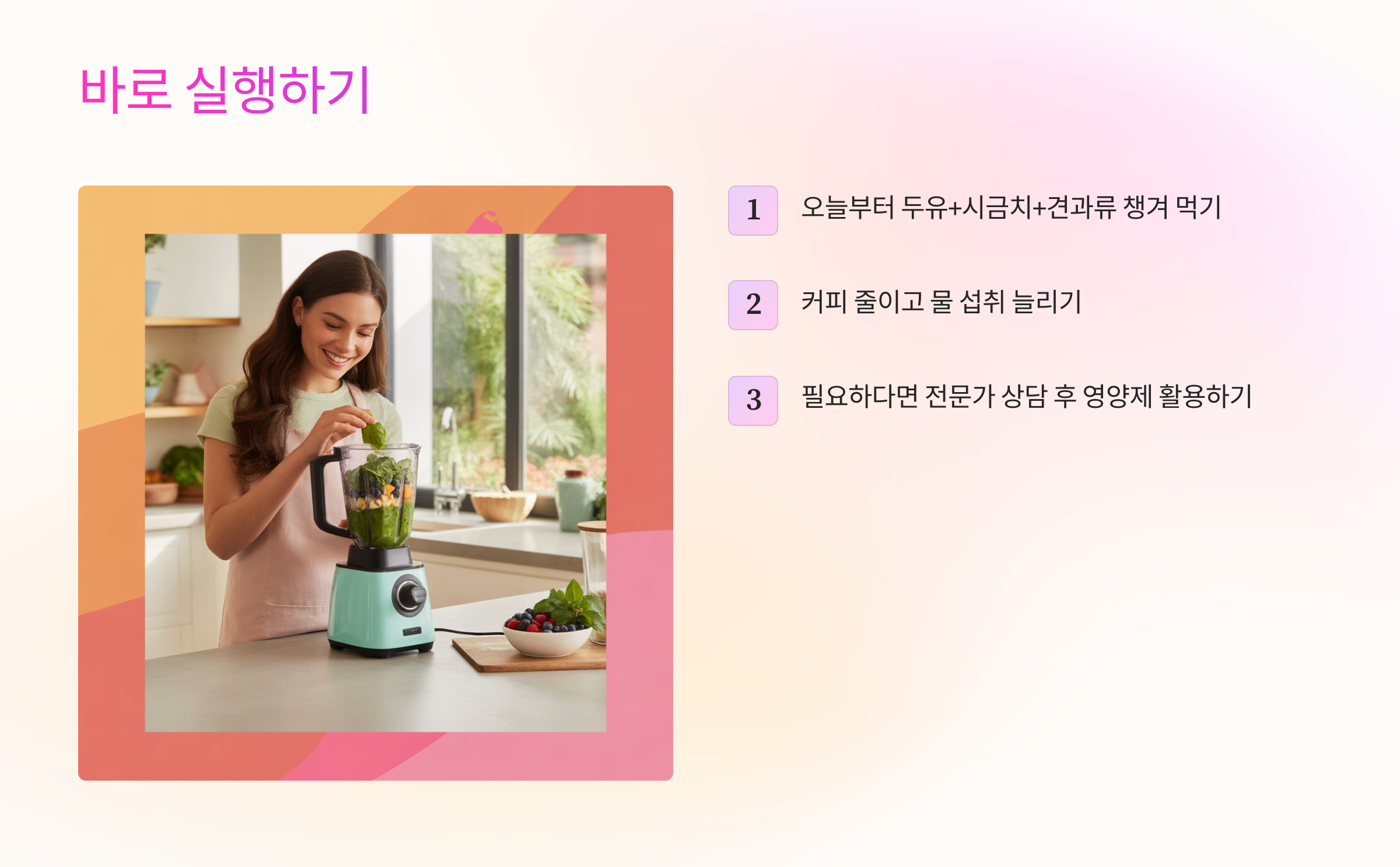 • [ ] 필요하다면 전문가 상담 후 영양제 활용하기