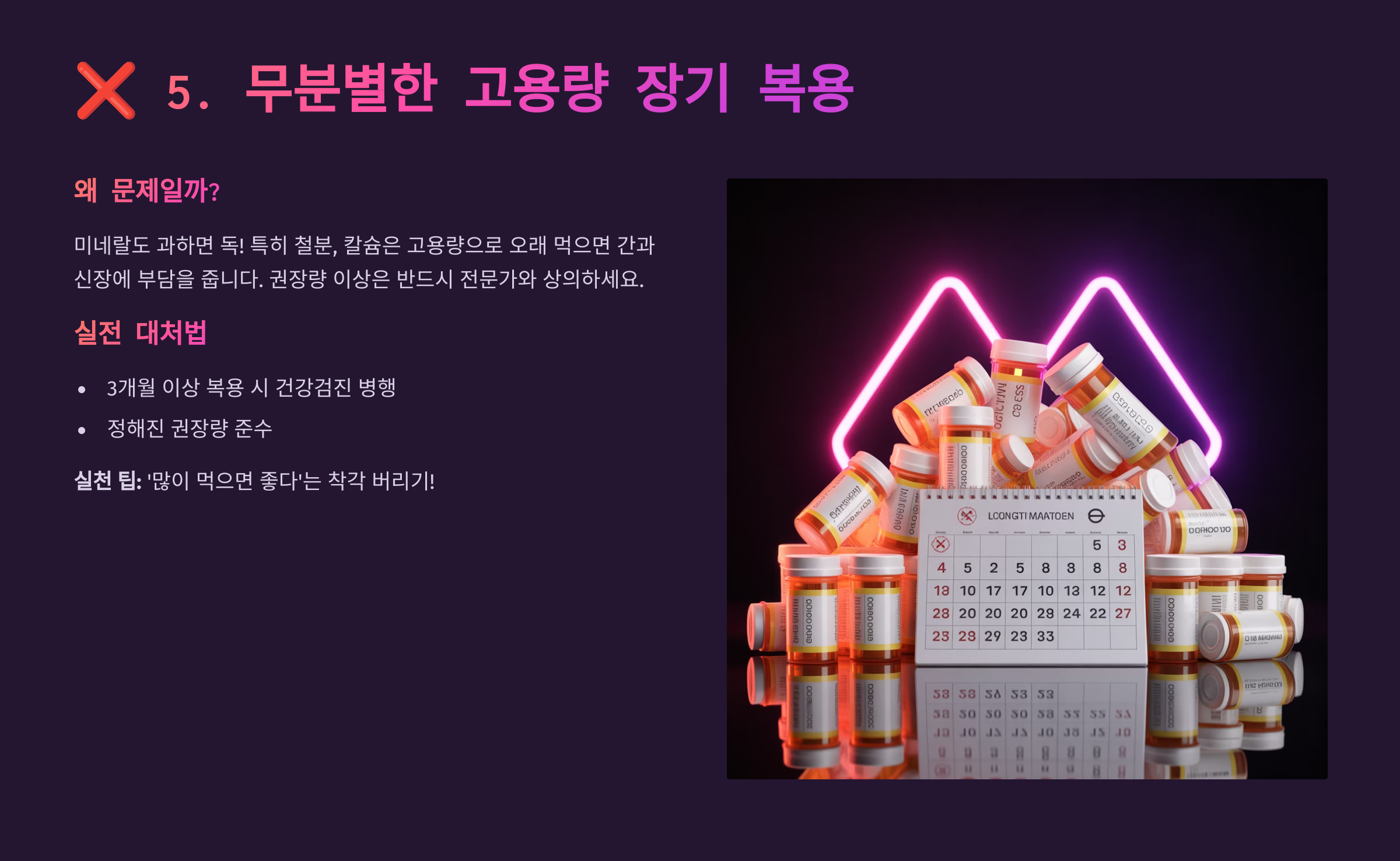 ❌ 5. 무분별한 고용량 장기 복용