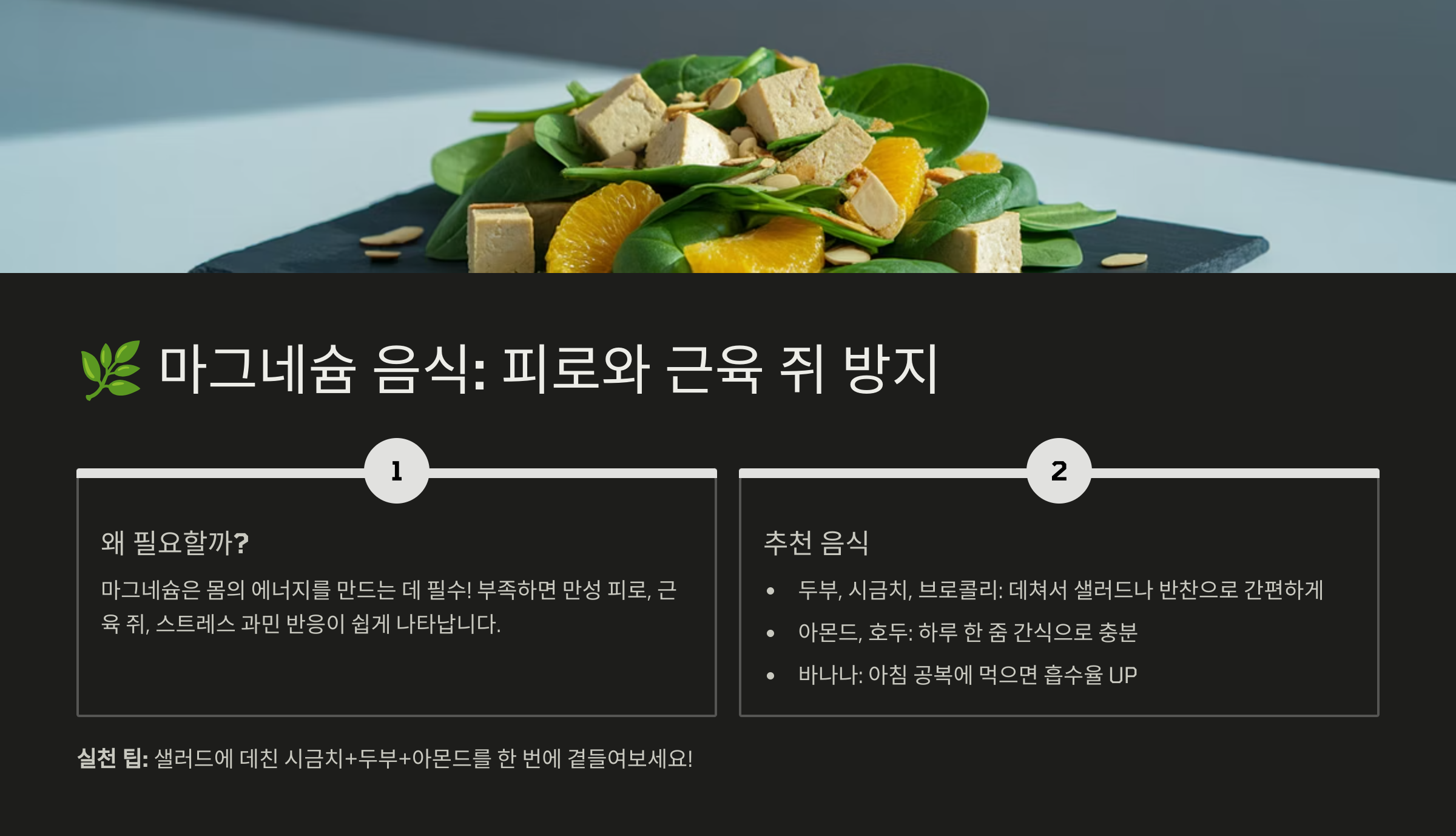 🌿 1. 마그네슘 음식: 피로와 근육 쥐 방지