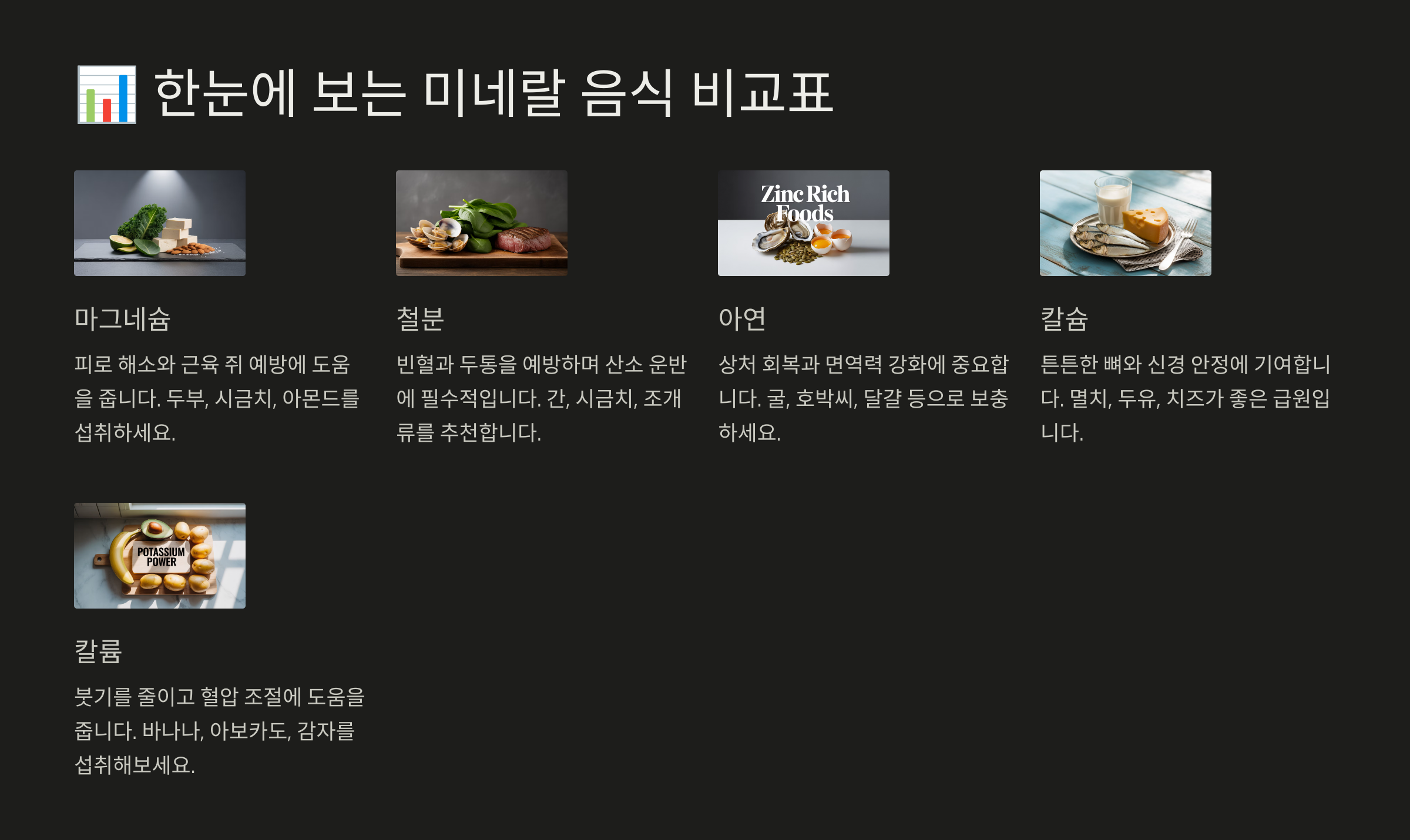 📊 6. 한눈에 보는 미네랄 음식 비교표
