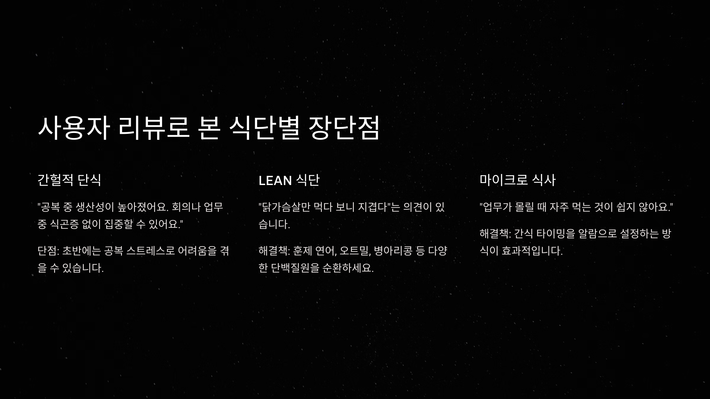 🔍 사용자 리뷰로 본 식단별 장단점