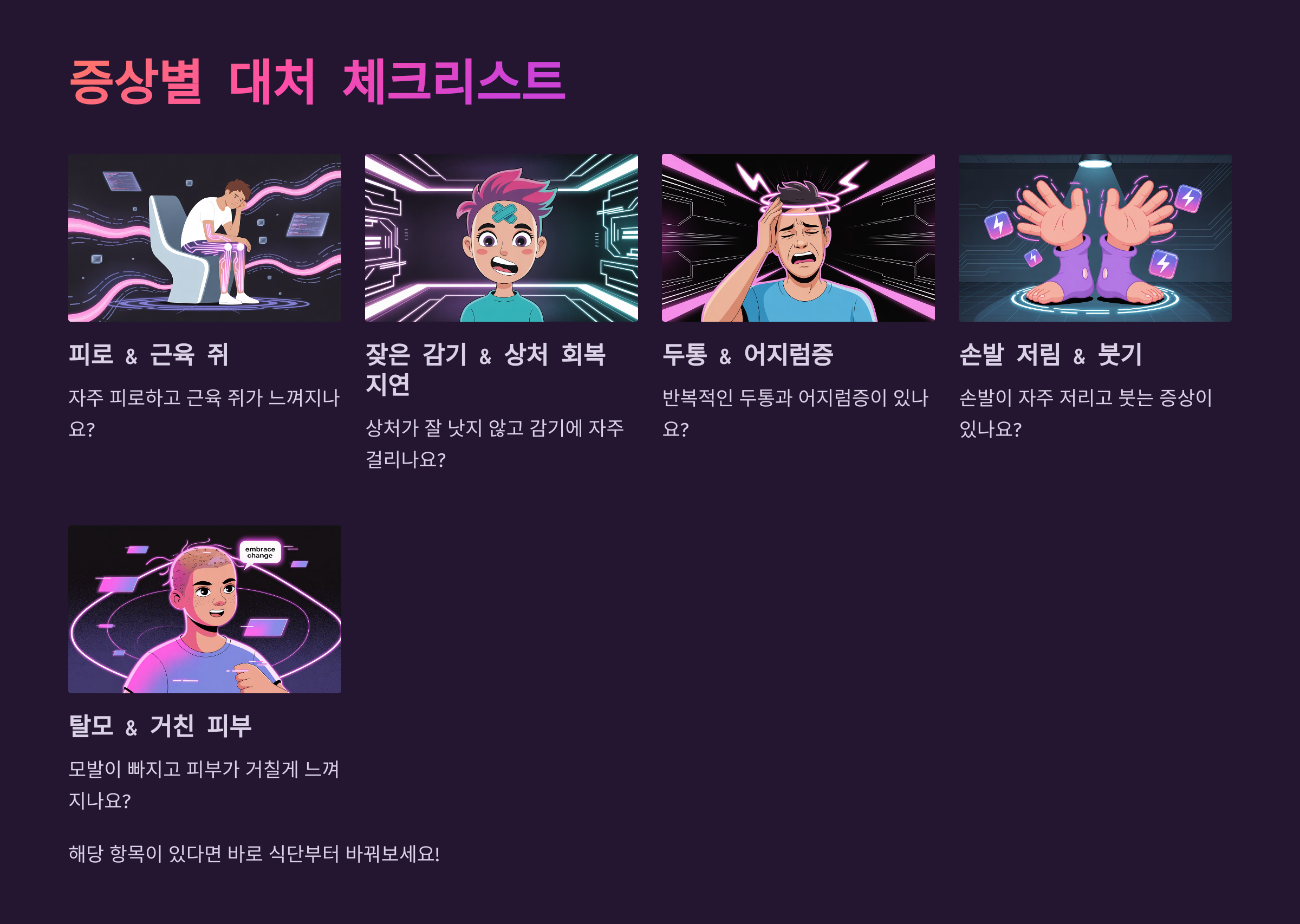 > TIP: 증상 2개 이상 해당된다면 오늘부터 식단을 바꿔보세요!