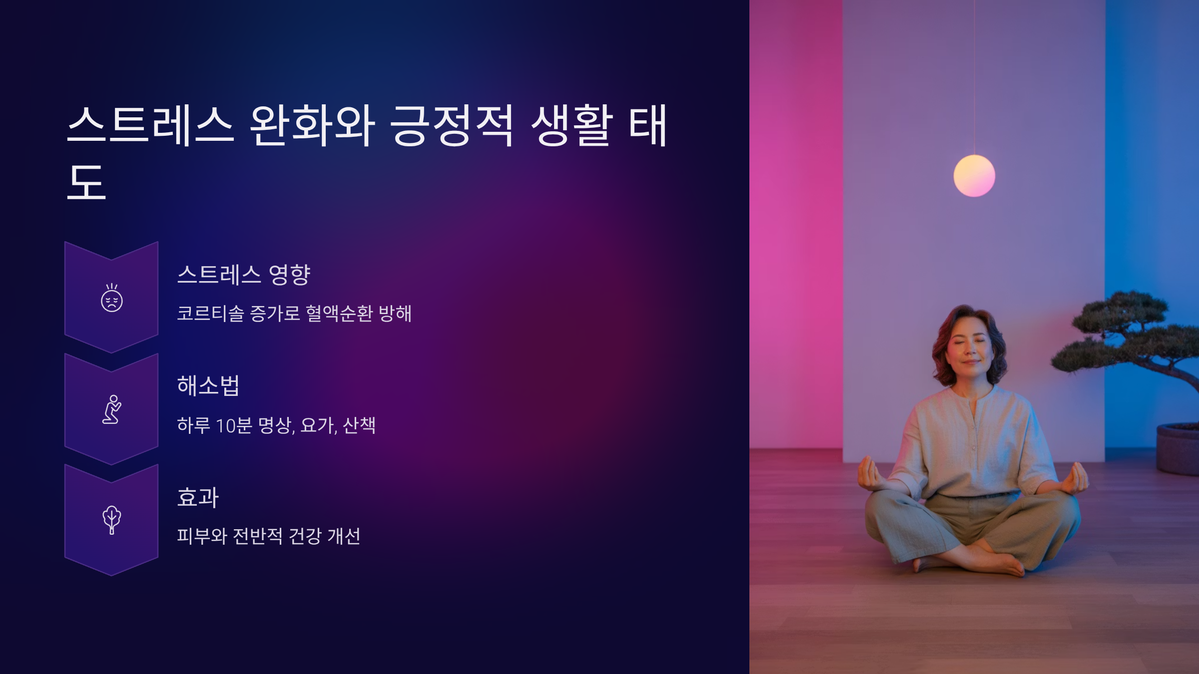 스트레스가 누적되면 코르티솔 호르몬이 증가해 혈액순환을 방해합니다.